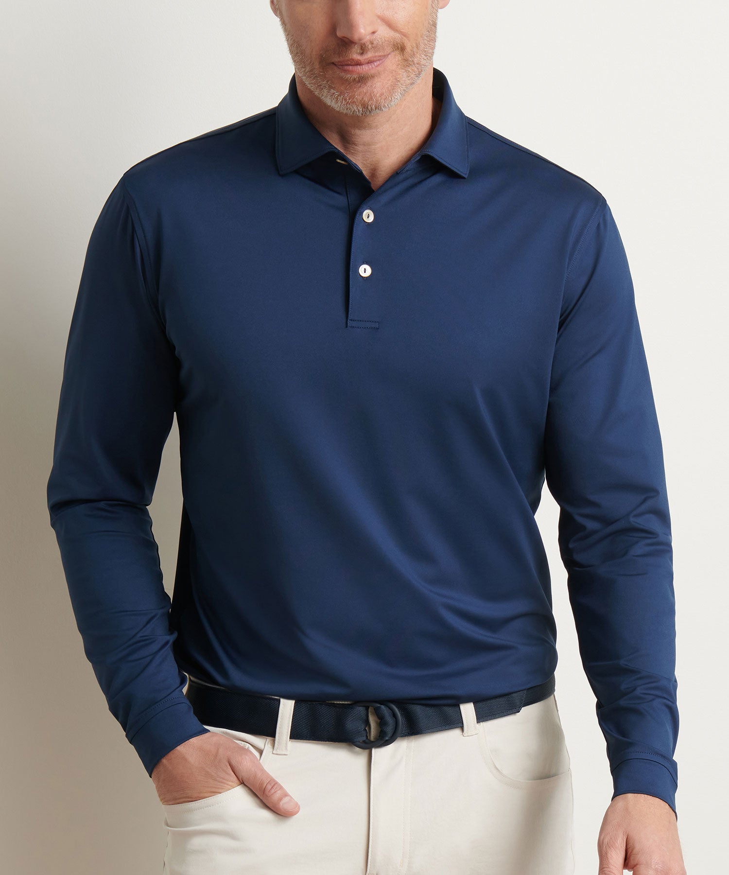 This is a old favorite that keeps coming back season after season. Peter Millar proves it's still the leader when it comes to performance fabric knit tops with shirts like this big and tall polo. It's the long sleeve version of their popular golf-inspired polos that have come to dominate the spring and summer seasons. The superior jersey fabric is a familiar one to fans. It offers an unbeatable amount of stretch comfort and temperature regulating properties. Stylistic elements like a three-button placket, self-fabric collar and banded cuffs and hem keep the look neat and traditional.