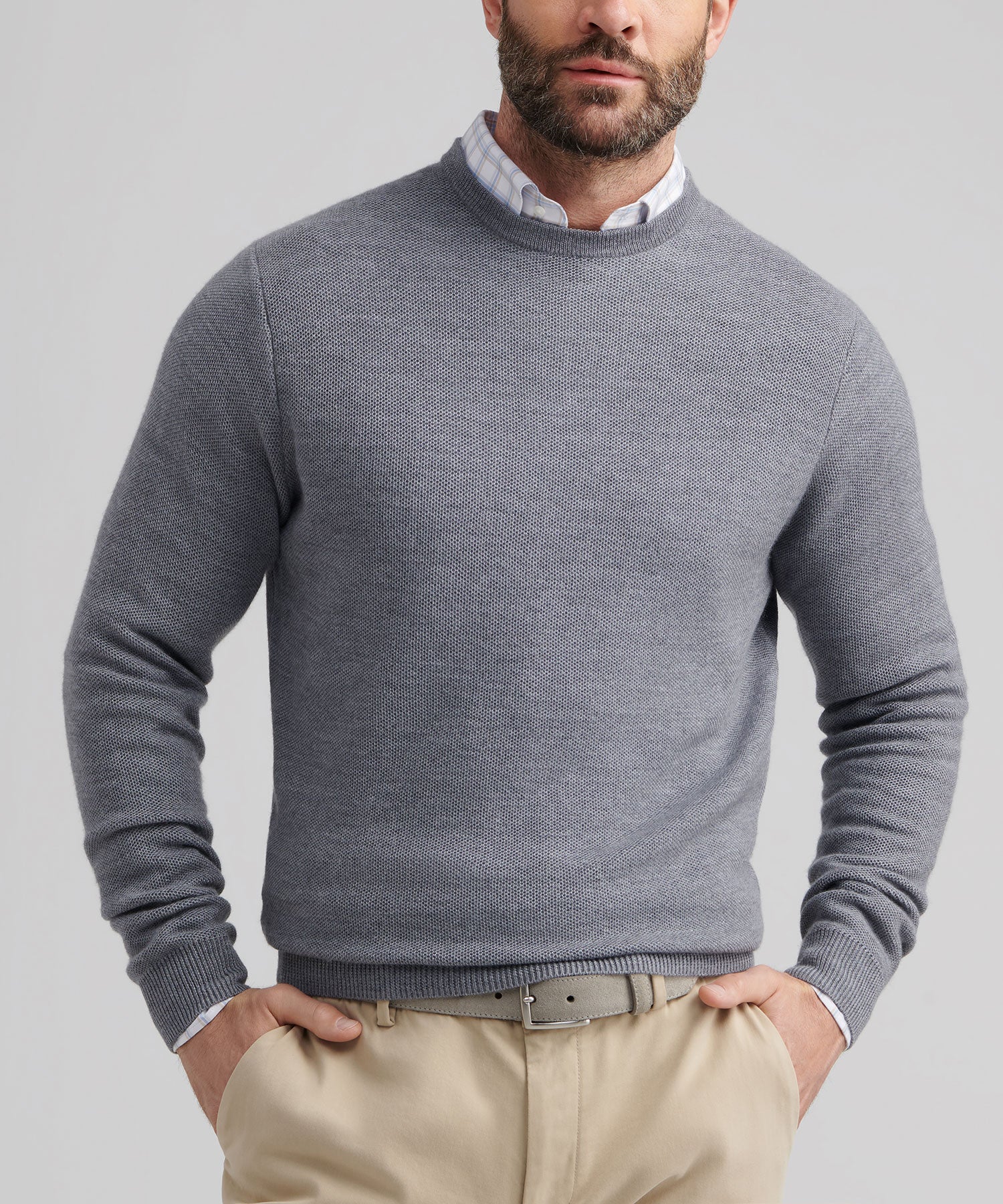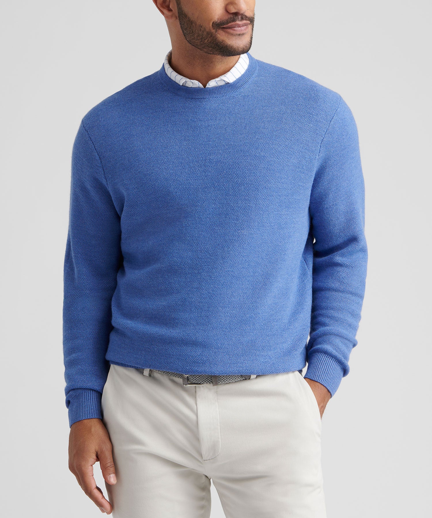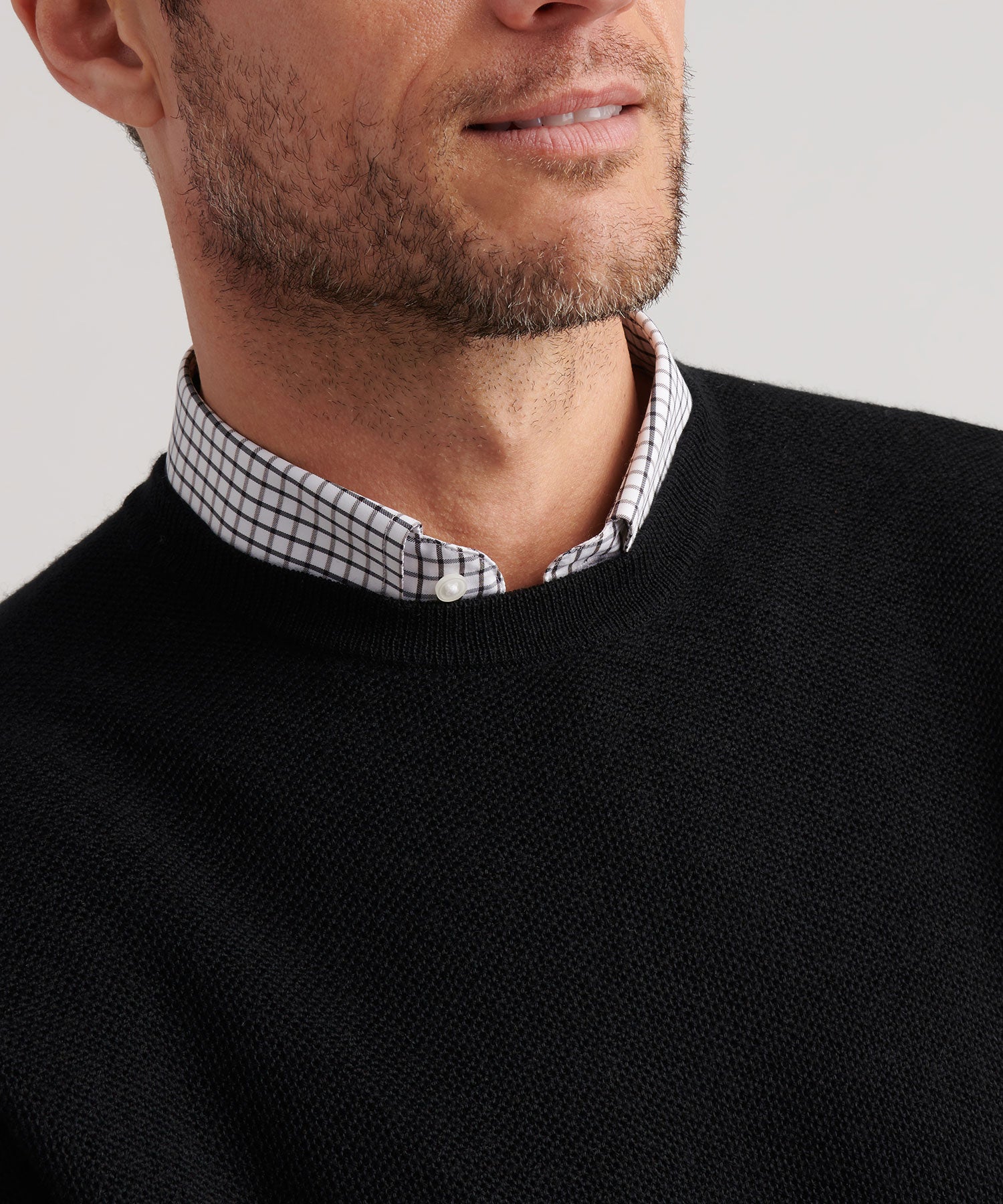 This big and tall sweater is designed to offer a midweight layering option while still retaining its luxe pedigree and immense softness. The premium merino wool is blended with modern performance fabrics to craft a pullover with great shape retention and breathability. It's also durable and built to last. The crew neck collar allows it to frame a complimentary sport shirt or keep a clean look over a t-shirt. The sleek honeycomb pattern is an added elevation and one more way this sweater ends up being a prized choice this season.
