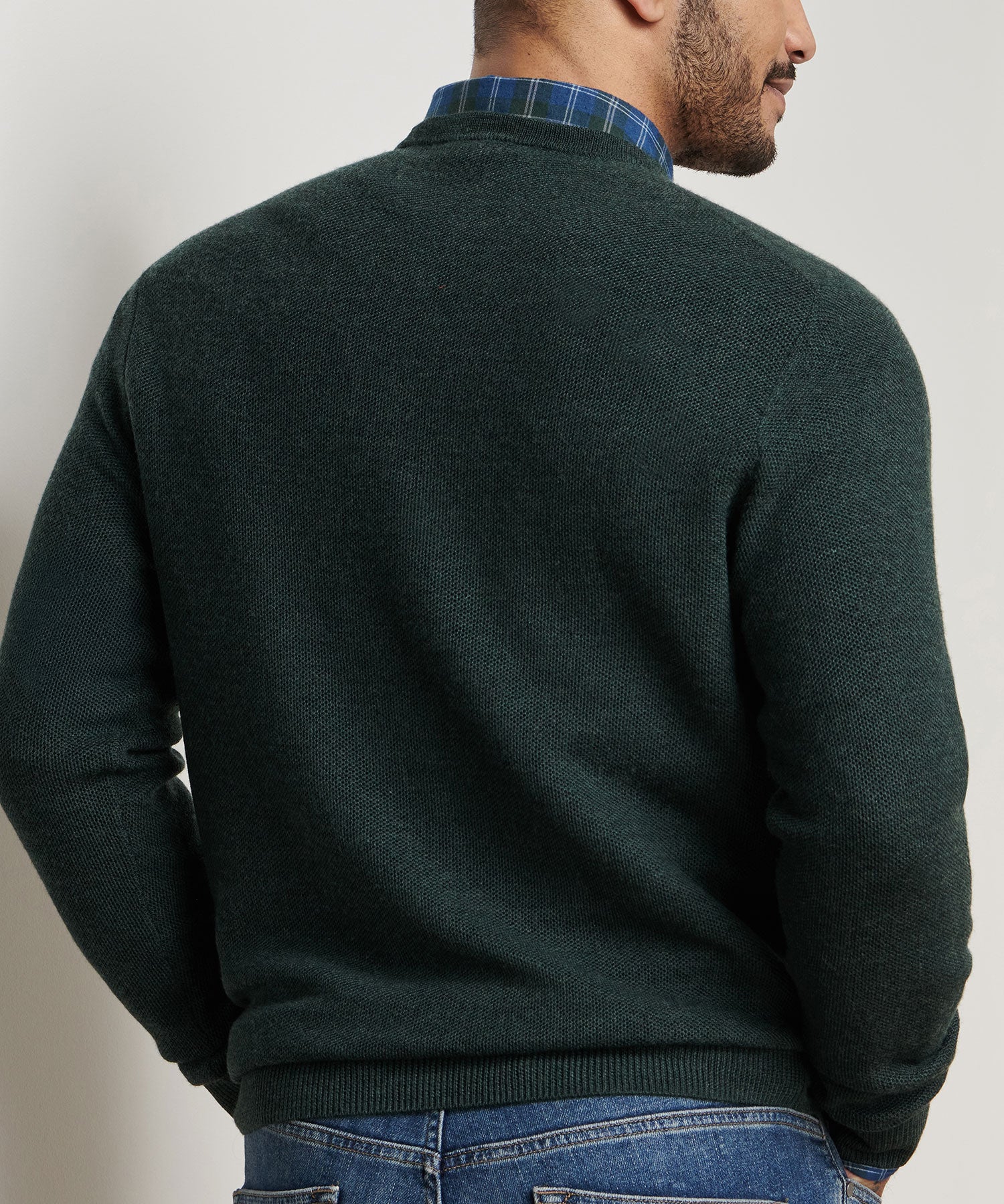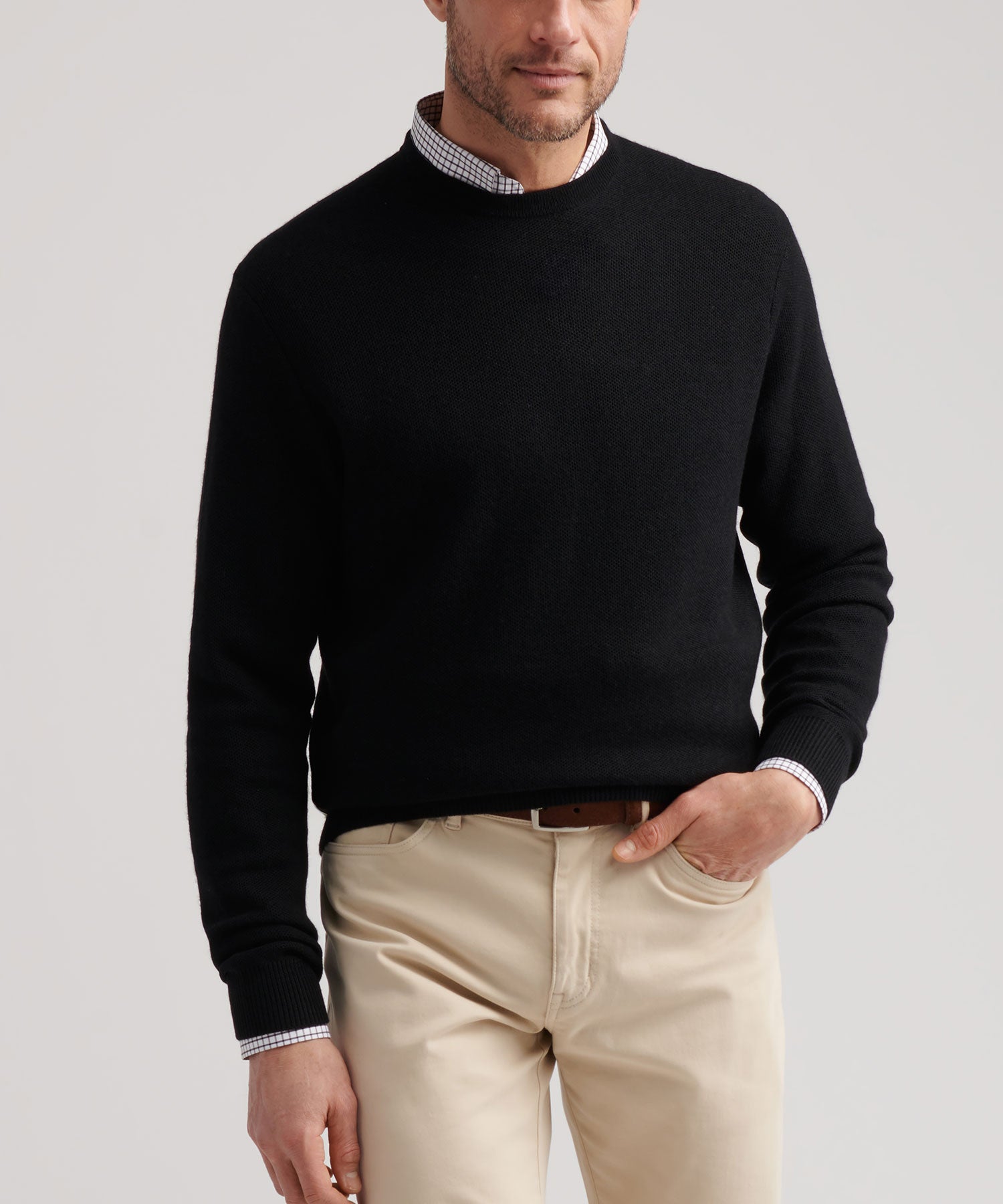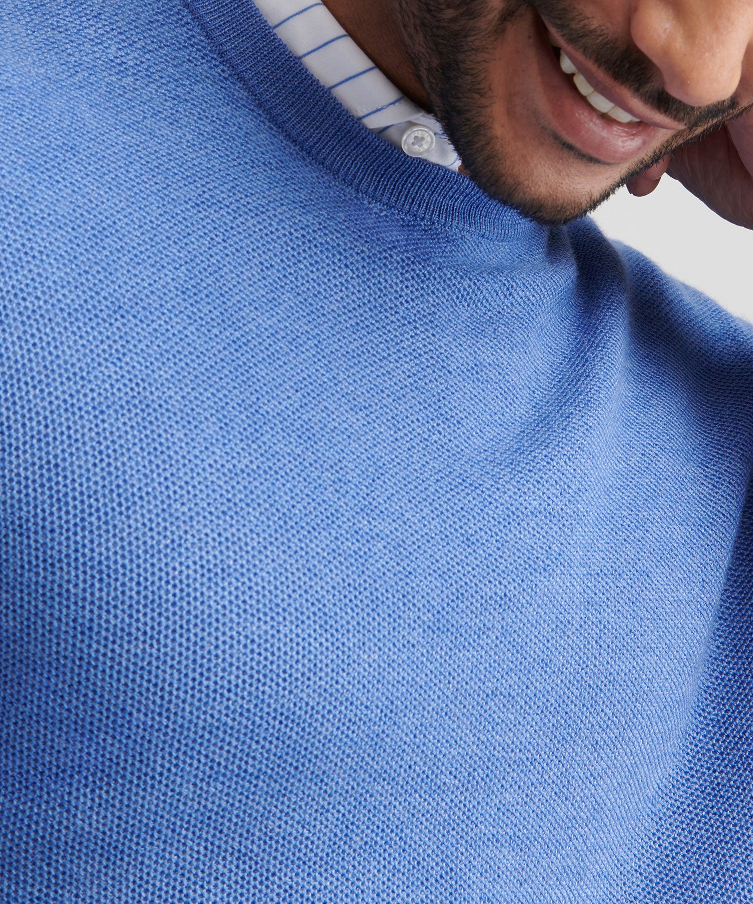 This big and tall sweater is designed to offer a midweight layering option while still retaining its luxe pedigree and immense softness. The premium merino wool is blended with modern performance fabrics to craft a pullover with great shape retention and breathability. It's also durable and built to last. The crew neck collar allows it to frame a complimentary sport shirt or keep a clean look over a t-shirt. The sleek honeycomb pattern is an added elevation and one more way this sweater ends up being a prized choice this season.