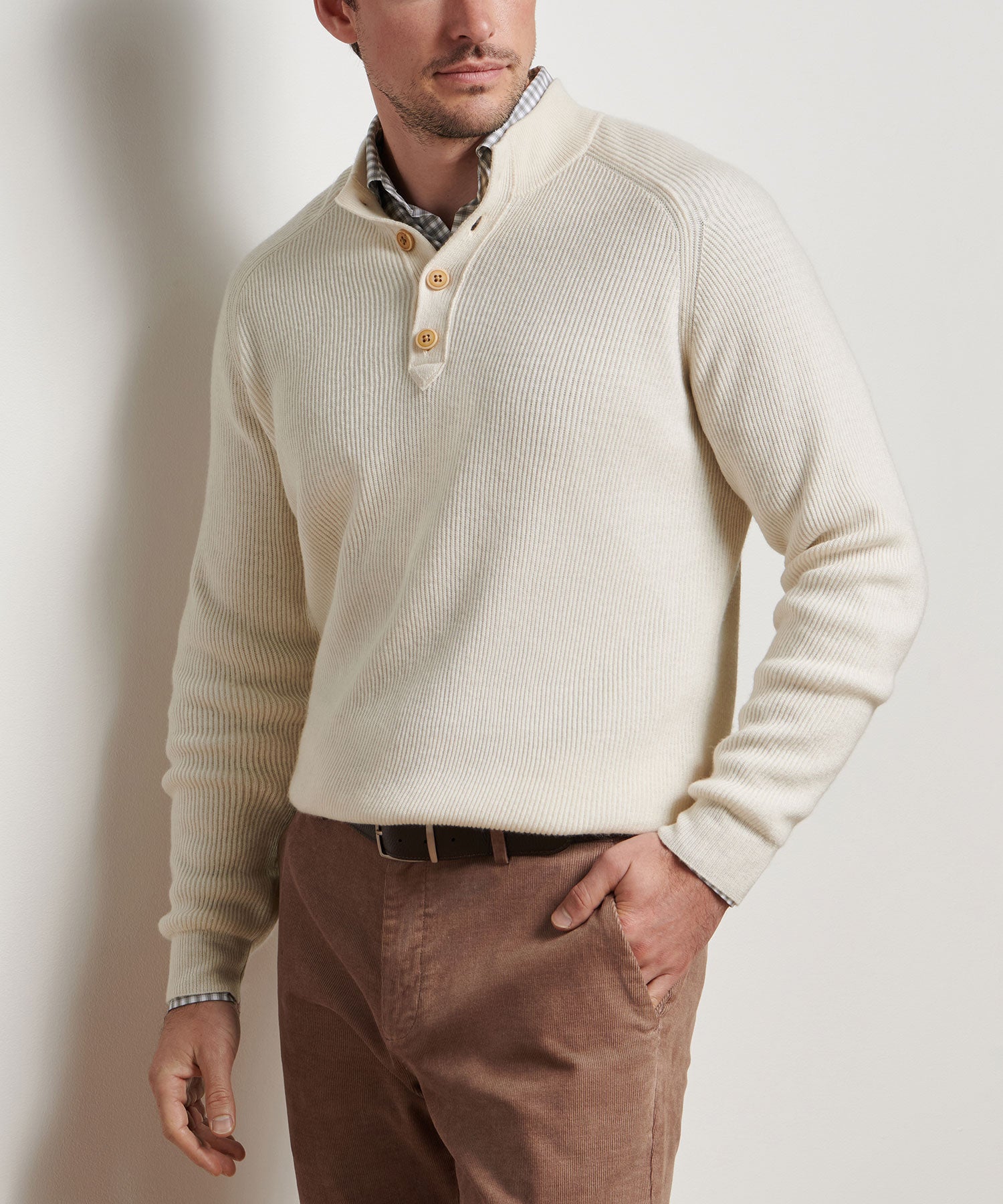 As iconic as it is unique, the button mock sweater radiates a slightly more rugged vibe than other sweater silhouettes. This one from Peter Millar offsets this rugged approach by fashioning it from some of the most luxurious fabrics around. Merino wool enhance with a touch of cashmere work together to create a super soft garment that will serve you well all fall and into the winter.