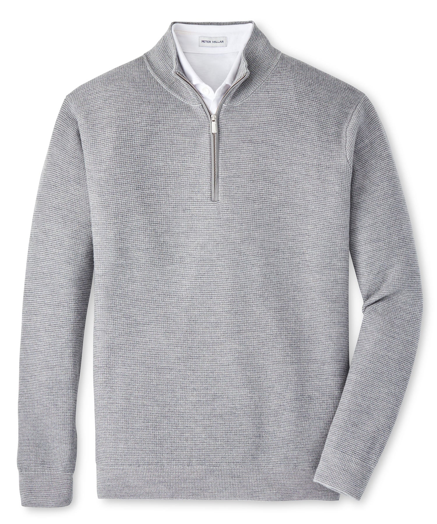 This big and tall pullover has a subtle textured stripe design. It's comprised entirely of soft and breathable merino wool and therefore conveys a lightweight approach and feel to layering. The familiar quarter zip front is augmented with a sueded trim on the placket; a touch of luxe. It's another for the win column for Peter Millar.