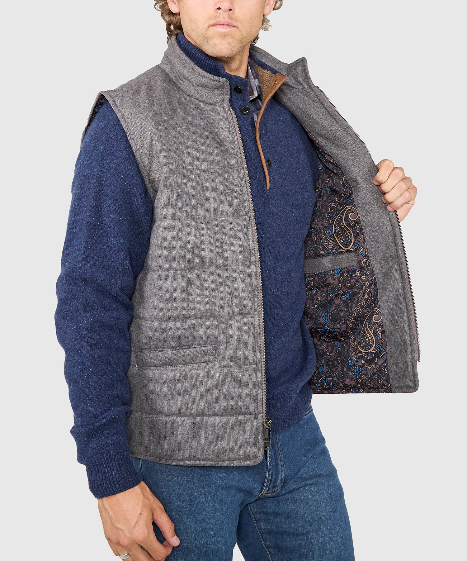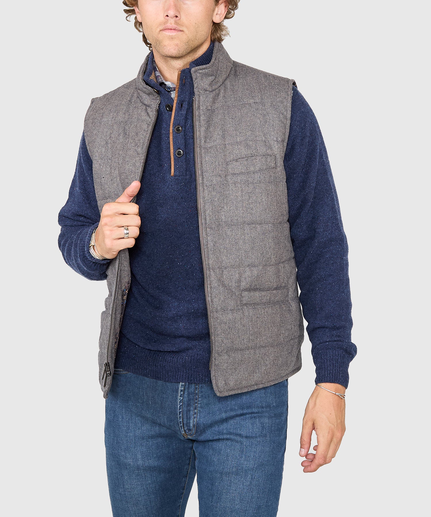 A reliable, comfortable vest is an essential piece of clothing. Maybe you're already layered with a bulky sweater and you just need something to serve as a final piece to maximize warmth and comfort. Maybe you're looking for that elusive last item to accent an outfit. This vest can be the answer to both. It takes care of the comfort question by featuring a quilted front. It has a lot of functionality too with a high stand collar to combat the wind. A two-way zipper allows for a more customizable closure. The embedded herringbone pattern is a subtle nod to this vest's stylish pedigree.