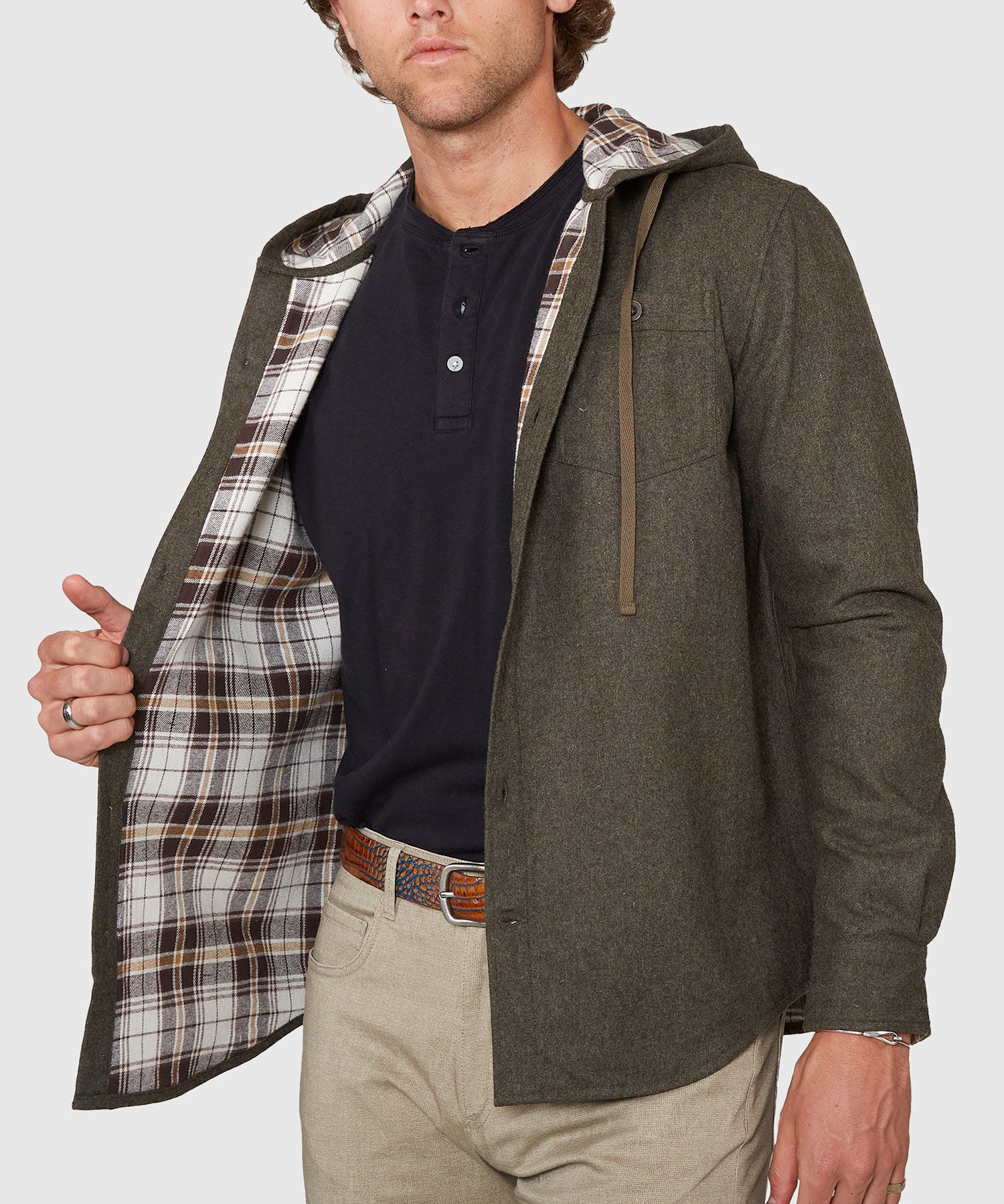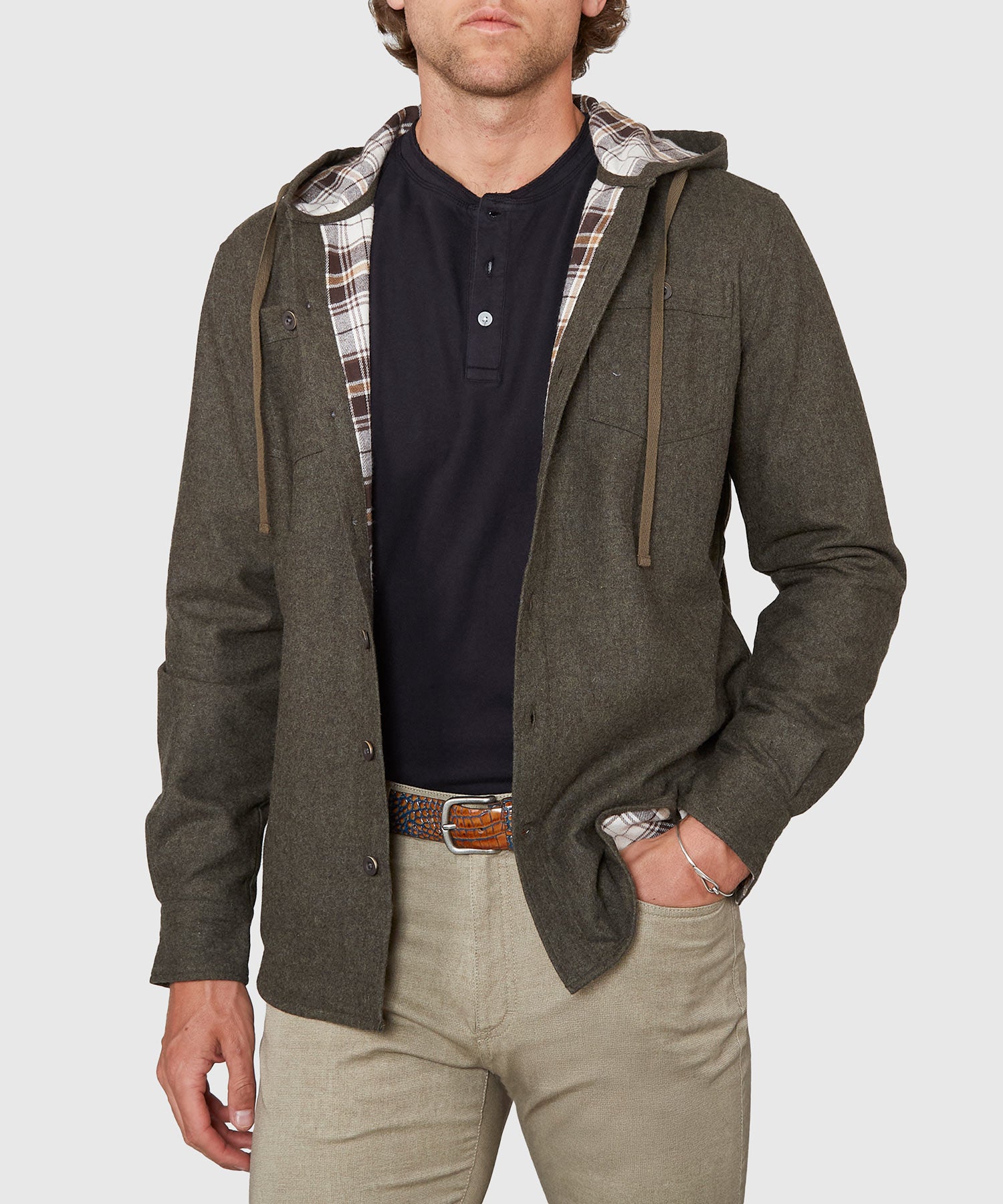 You can feel confident about staying comfortable when you're wearing this big and tall layer. The unencumbered, layered warmth of a shirt jacket meets the protection a drawstring hood in this 'go-to' seasonal classic-in-the-making. It also comes with dual chest pockets that help to give it a little visual character and balance. Contrast plaid lining lets it pop and makes it stand out from the crowd.