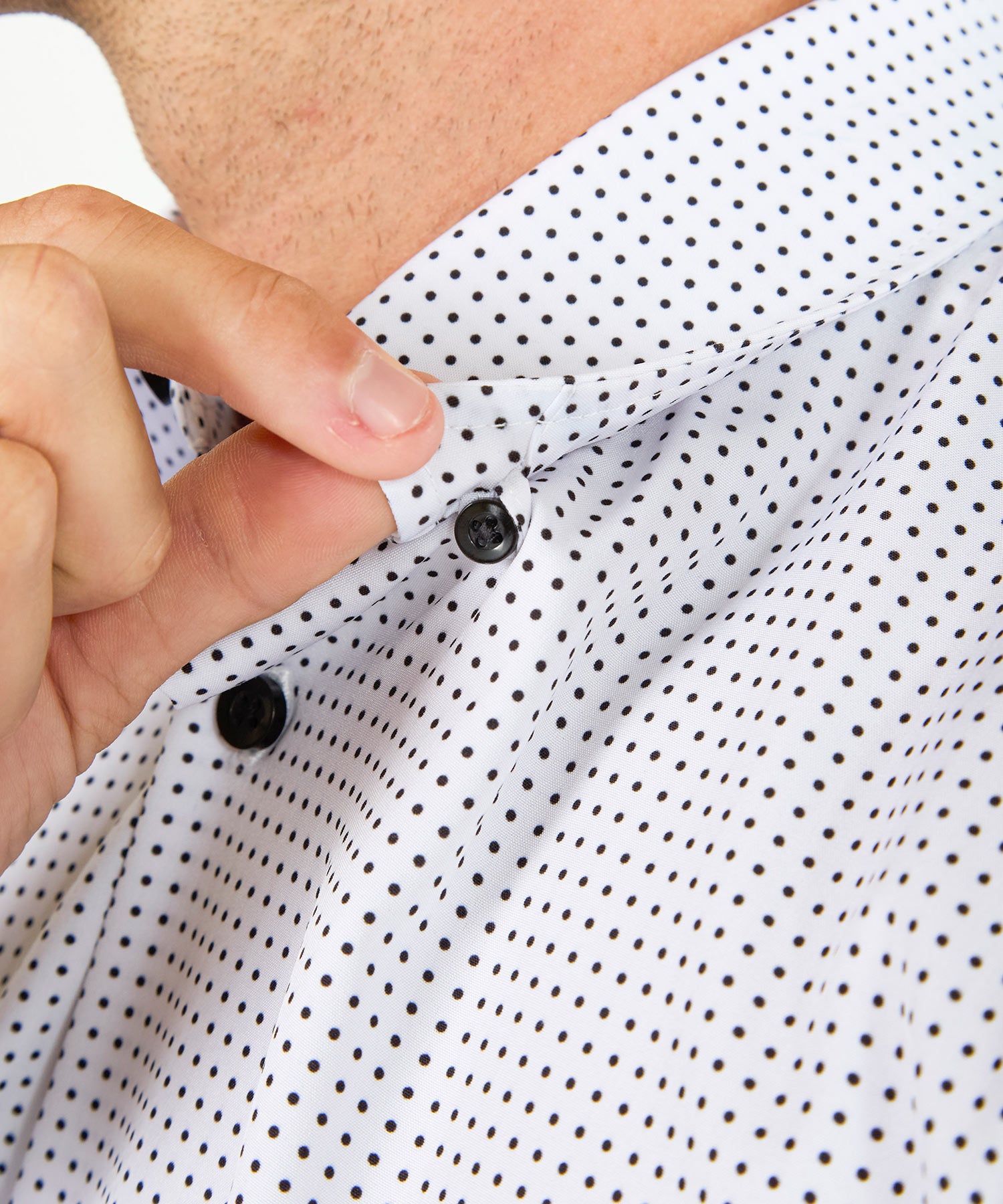 Our Westport No-Tuck brand has been creating dynamic, exclusive collections of sport shirts for several seasons now and has become a leader for both its fit and style. Three distinct lengths help to ensure the perfect untucked look because we know that not every body is the same. For gentleman up to 6 feet tall, we recommend big sizing. Between 6'1" and 6'4" - our mid-tall length will offer the best fit. And those over 6'4" should opt for tall sizing to get the correct length. The fit, however, is just the start. Premium performance fabrics makes this big and tall (or mid-tall) shirt as comfortable to wear as it is fashion-forward. It's brimming with stretch and helps keeps you cool as well. Custom buttons help to give a pop of personality and the hidden button-under feature lets you enjoy the spread-collar look without ever having to worry about it being askew. A mini-dot pattern like this one is a great way to wear a print without standing out too much. It's one that can stand on its own or,just as equally, add some pop to a layered look.