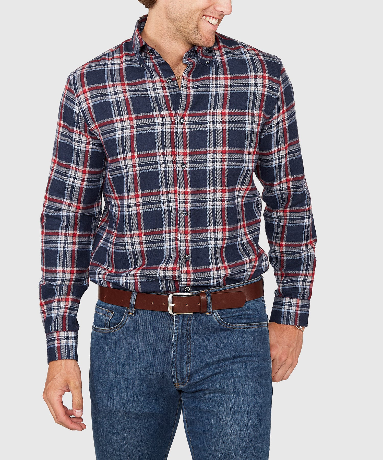 Sport shirts are a vital part of every man's fall wardrobe, especially since our favorite short-sleeve polos and t-shirts settle into a dresser drawer for the cooler season ahead. As a result, it's important to refresh the collection and look to shirts that are built with shorter days in mind. Flannel is a perfect answer to the age-old question of how to elevate your fall casual game and stay looking 'put-together' at the same time. This big and tall flannel shirt features a modern cotton blend that wears superbly over time and offers up a soft, brushed hand. It's classically-styled with a button down collar and double button cuffed sleeves. It also features soft, autumnal hues that help shine the spotlight on you and help anchor whatever you pair with it. A natural choice with denim, chinos or corduroy.