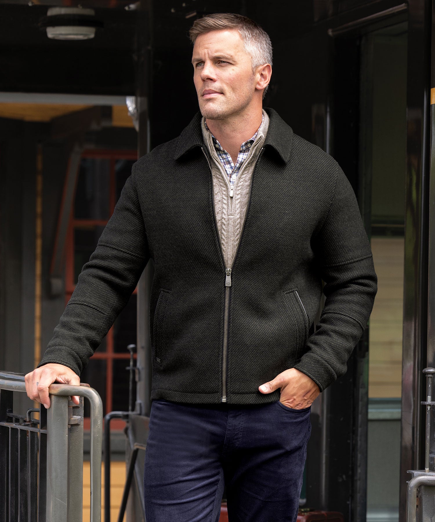 The waist length bomber style coat is a versatile and effective way to combat the cold and not feel too encumbered doing it. It's light and portable and is loaded with features. First, it's got a full zip front that finishes close to the neck for maximum warmth. Up top its got a stand collar that can come down and lay flat is desired. The adjustable snaps on the sleeves allow you to customize them your way. It also has waist-side snaps for a customizable fit. Last but not least, its got a signature HSM print on the interior lining.