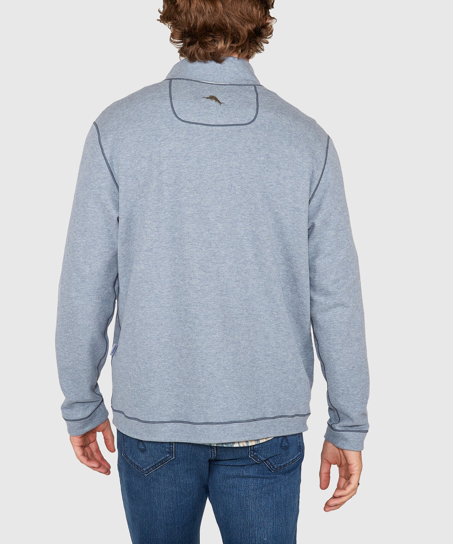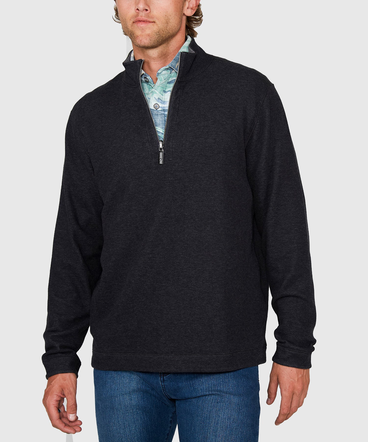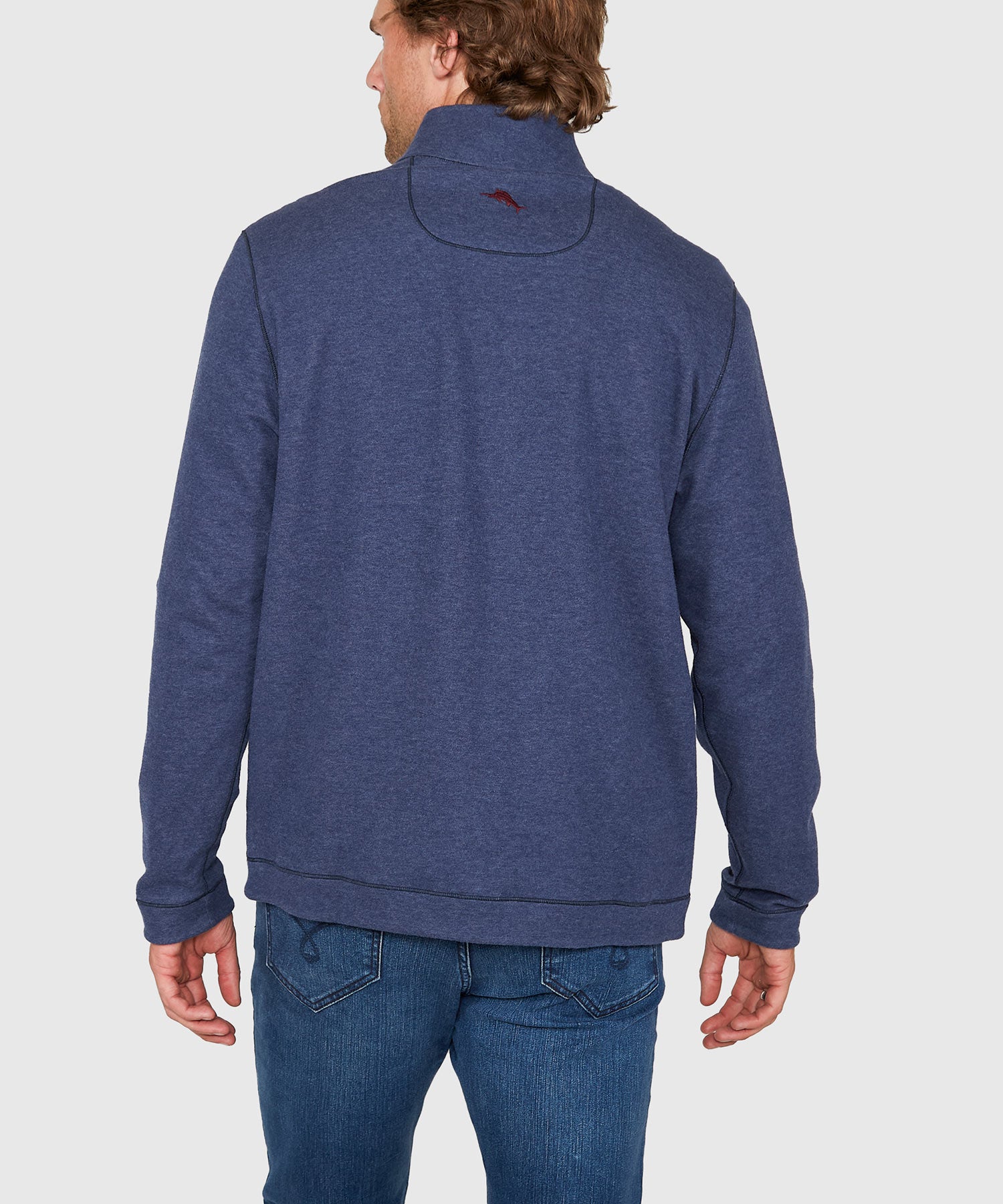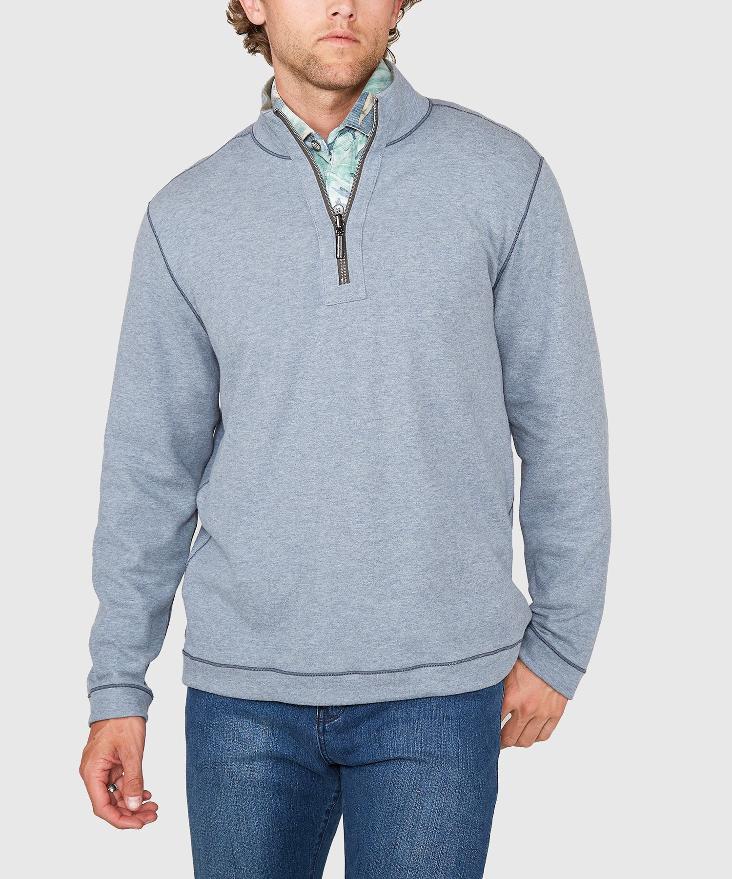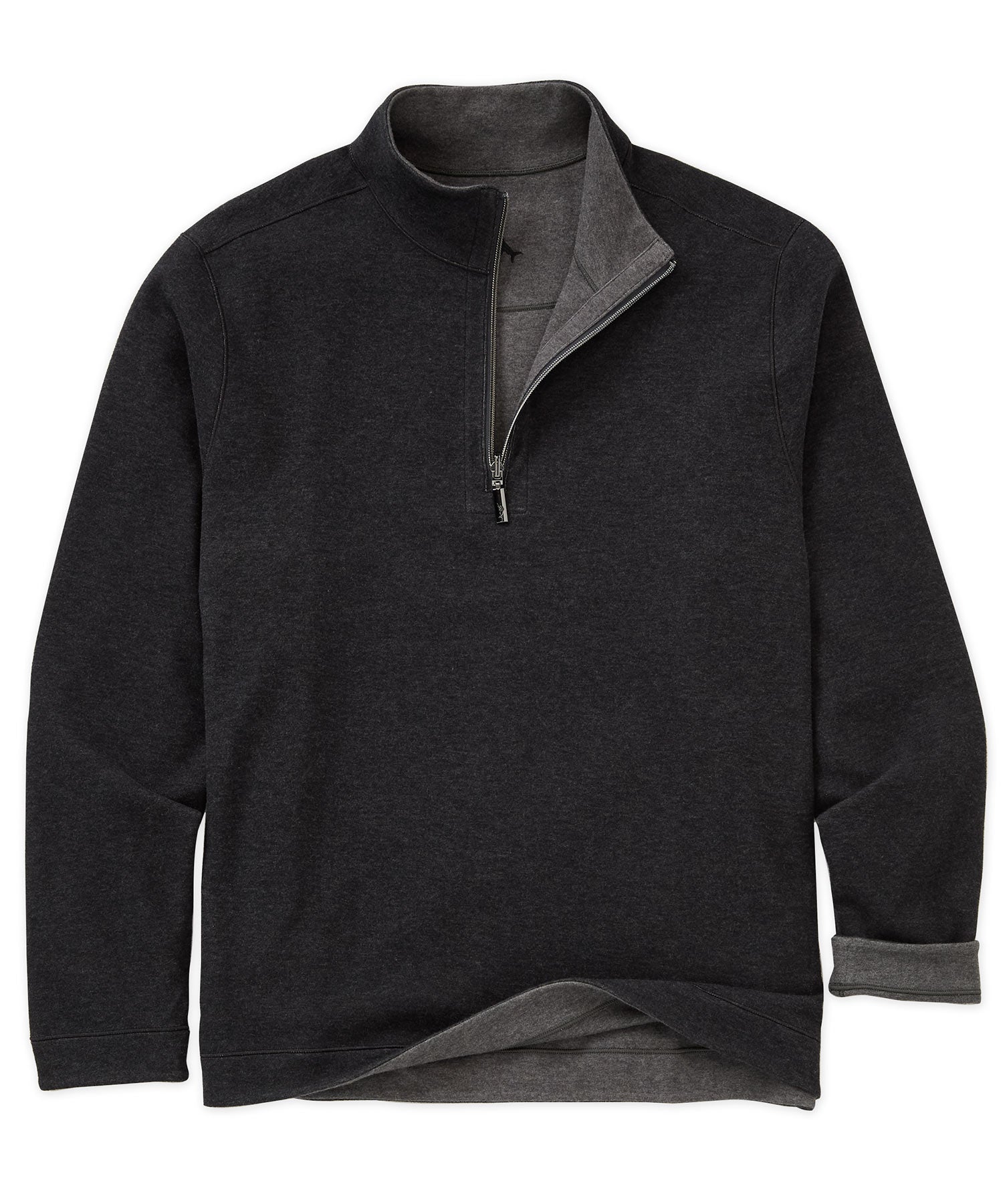 Tommy Bahama does it again with two half-zips in-one. This big and tall pullover is fully reversible and ready for you to change your look up at a moment's notice. Additionally it's got to be one of softest layering pieces around. Rich cotton pairs with modern performance materials to offer some comfort-enhancing stretch. Cover stitch detailing throughout also adds a touch of rugged style.