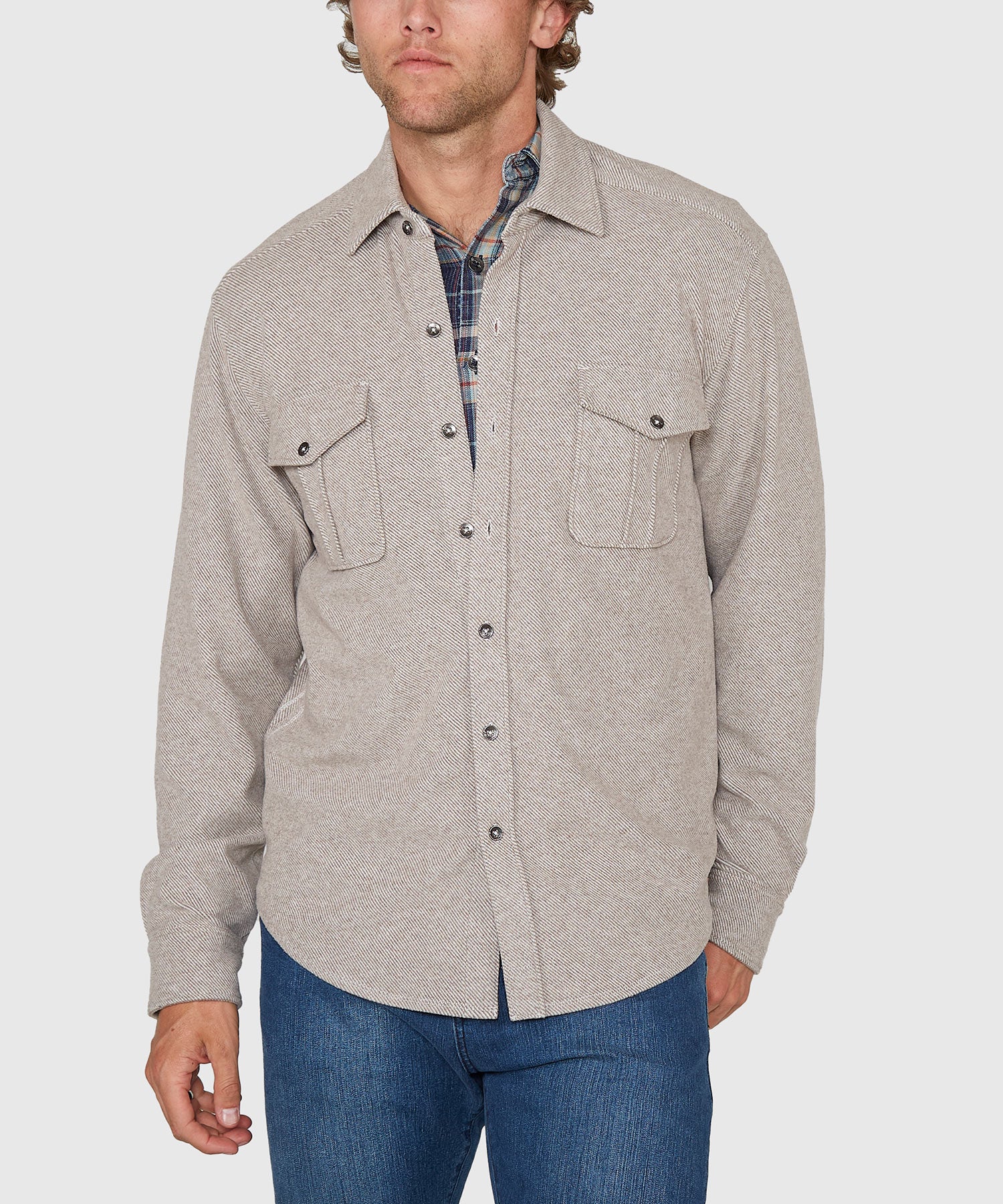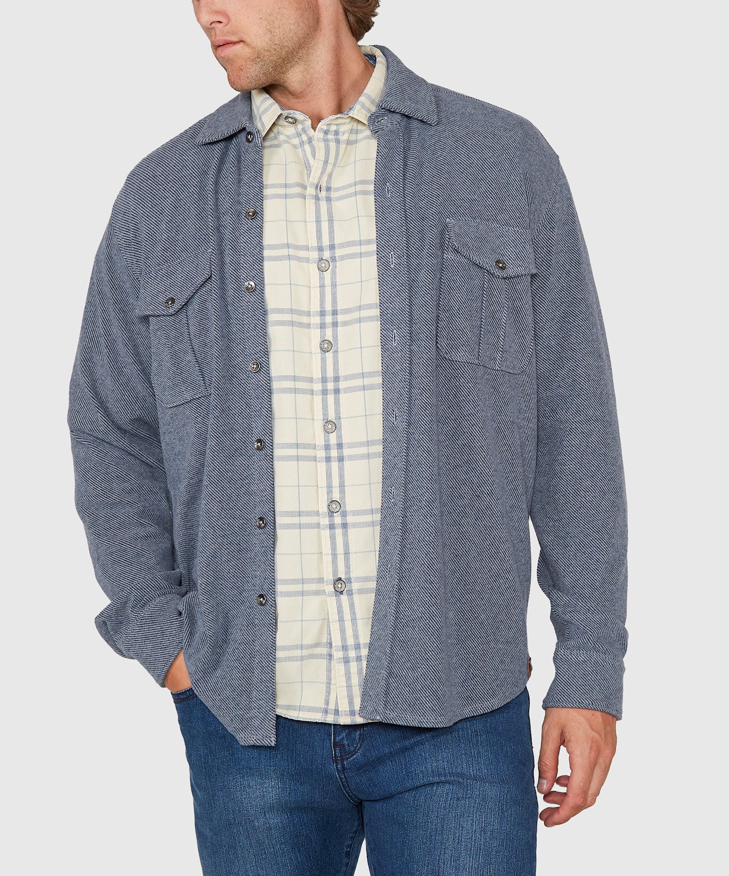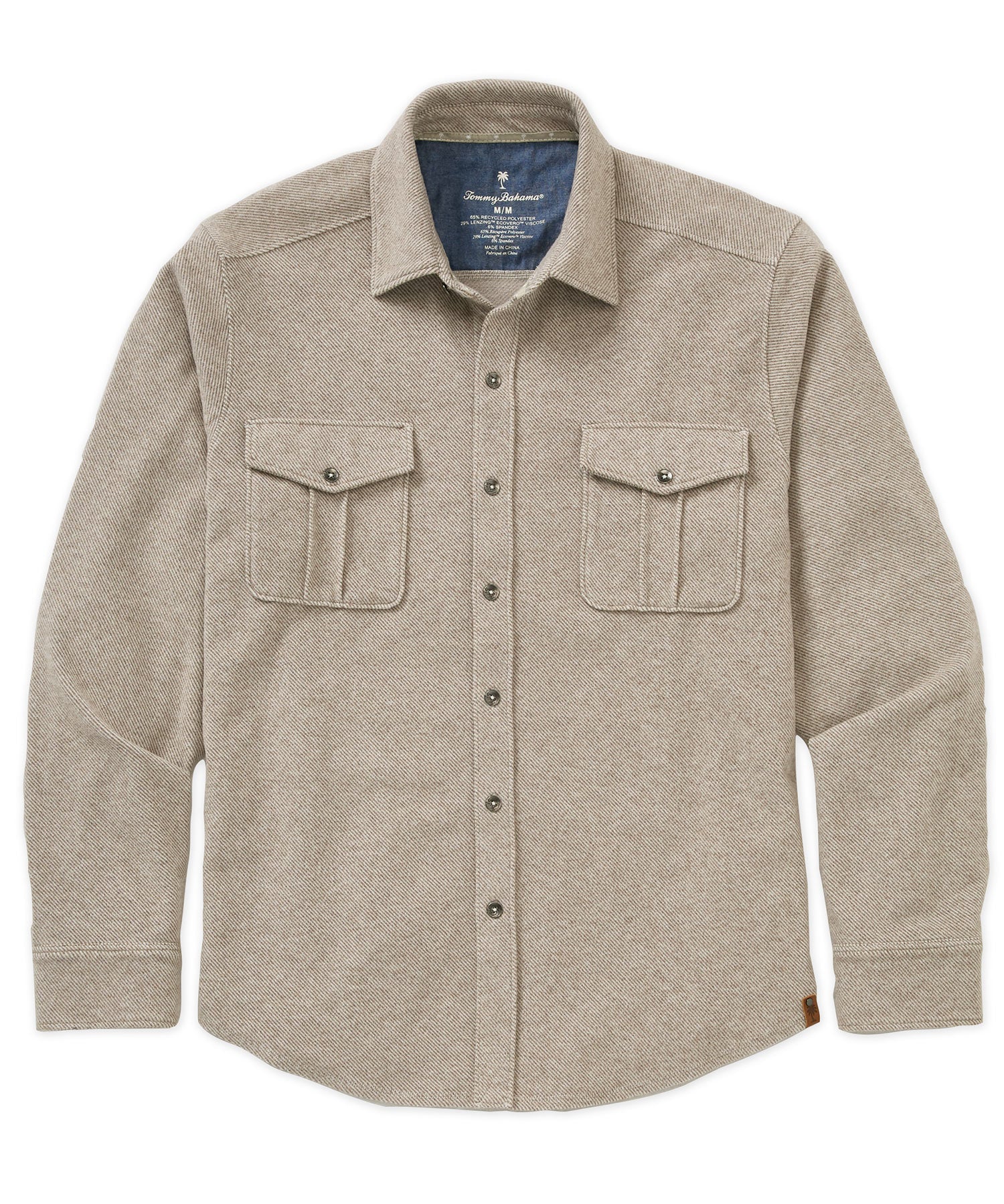 This season Tommy Bahama brings you this big and tall version an old favorite. It's styled like a classic chambray shirt but crafted in a more modern array of fabrics and outfitted with a soft brushed finish. It still carries a rugged pedigree with its open collar and two chest pockets. It's built for relaxed and refined moments. Whether it's worn on its own or thrown over a henley or tee, it'll more than earn its spot in your collection this fall.