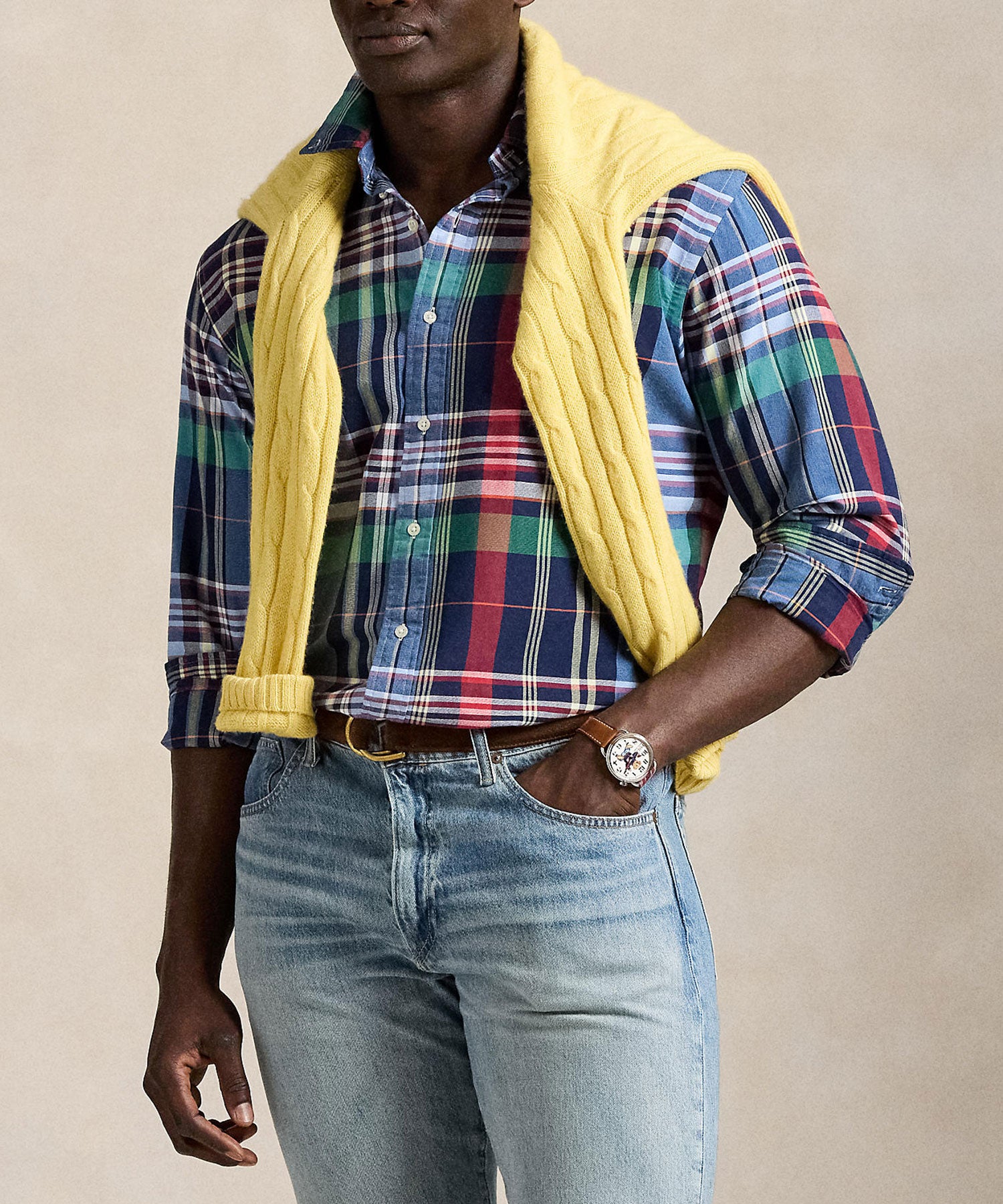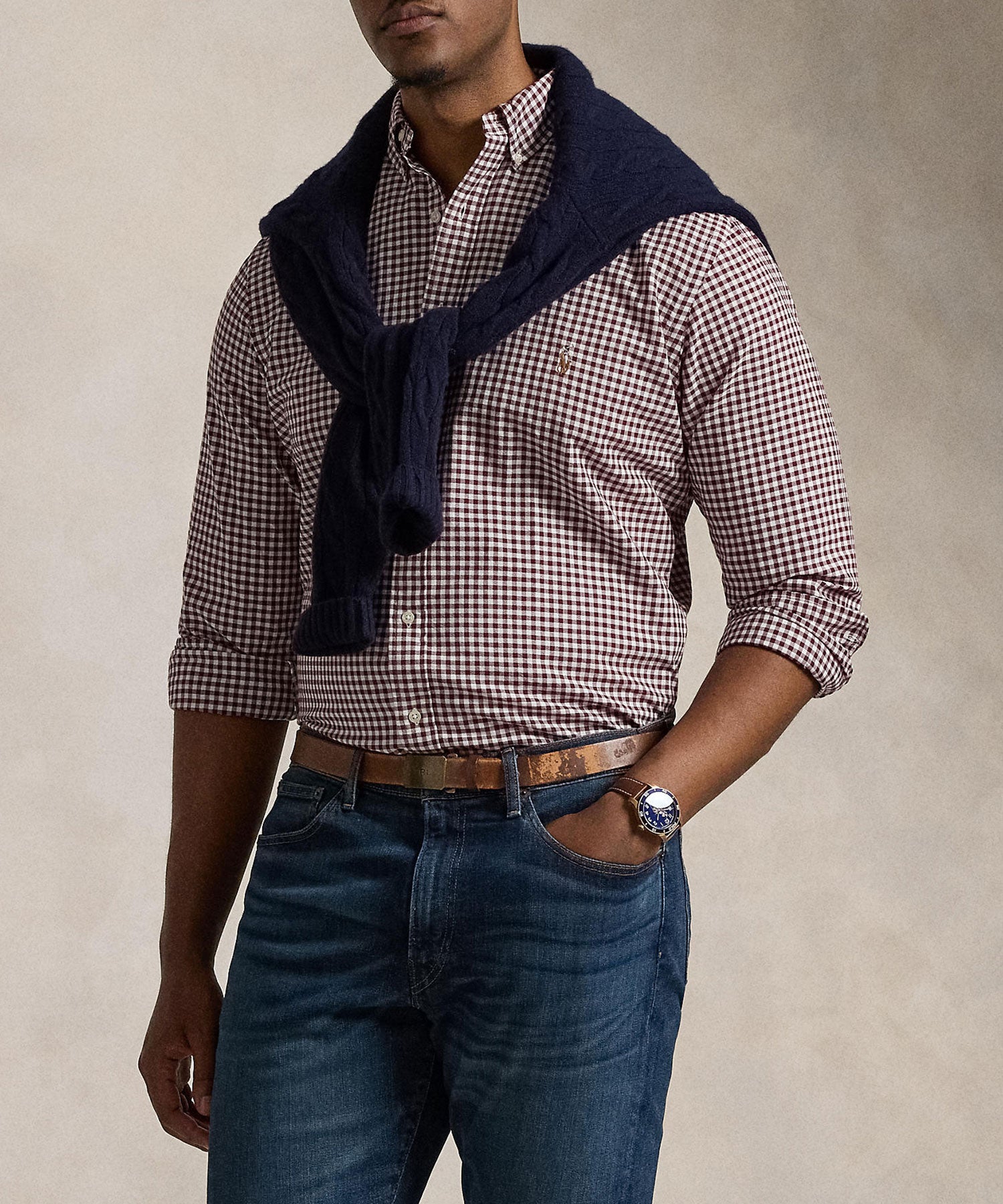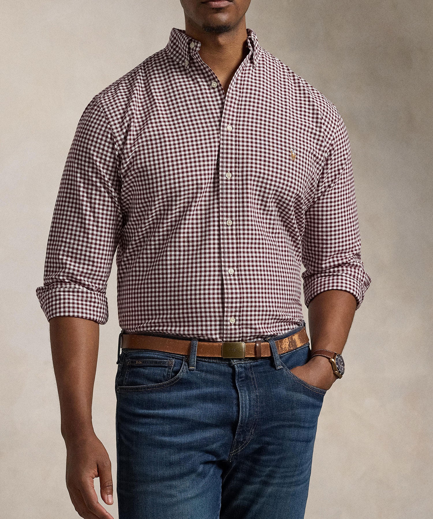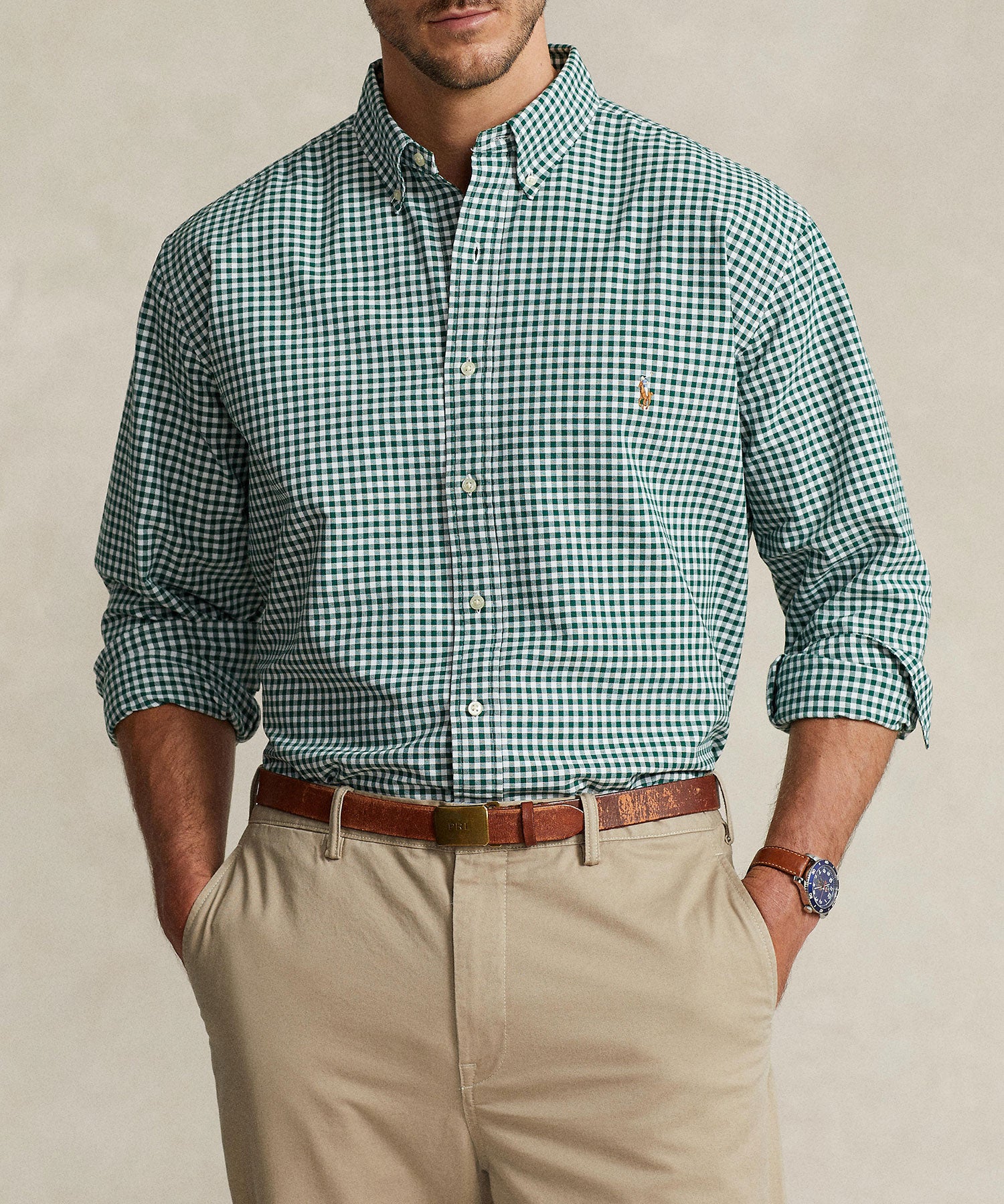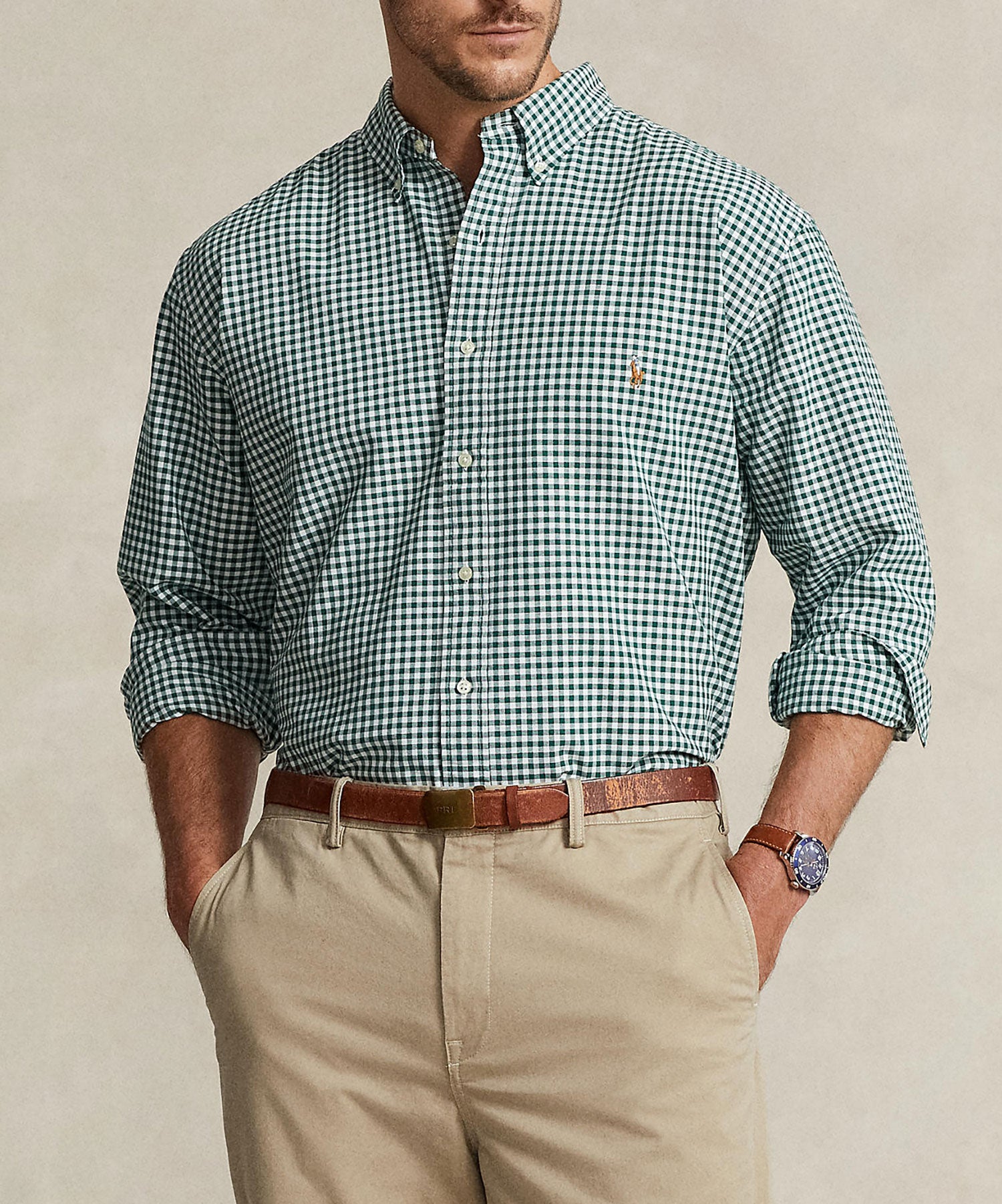 A singularly iconic item, this button down oxford shirt is a must-have season after season. Its relaxed fit pairs in both form, fit and feel with a soft cotton, giving it an almost 'lived-in' quality. The button down collar is right in line stylistically with the rustic spirit of this big and tall shirt. When it's paired with denim or khakis it lends an array of color and design to any casual ensemble. It can also be employed worn open over a t-shirt; maybe even a tee that shares a color in the shirt itself. It's a nice touch when looking for ways to tie pieces together. Whether it wields a plaid, stripe or gingham, it's a winner and one that will undoubtedly find its way into regular use this spring.