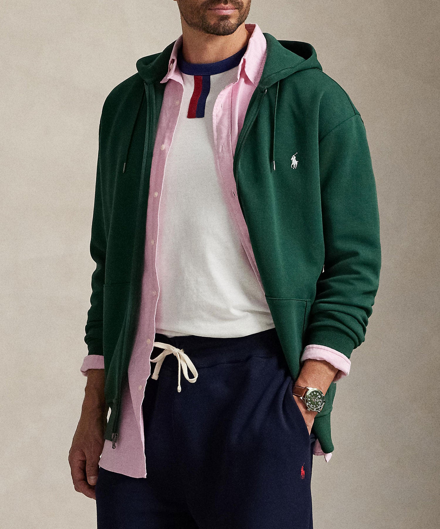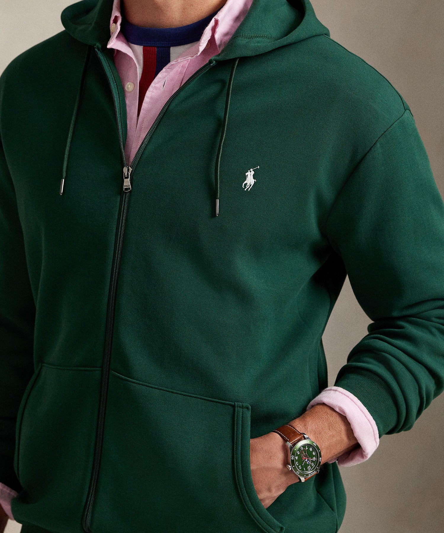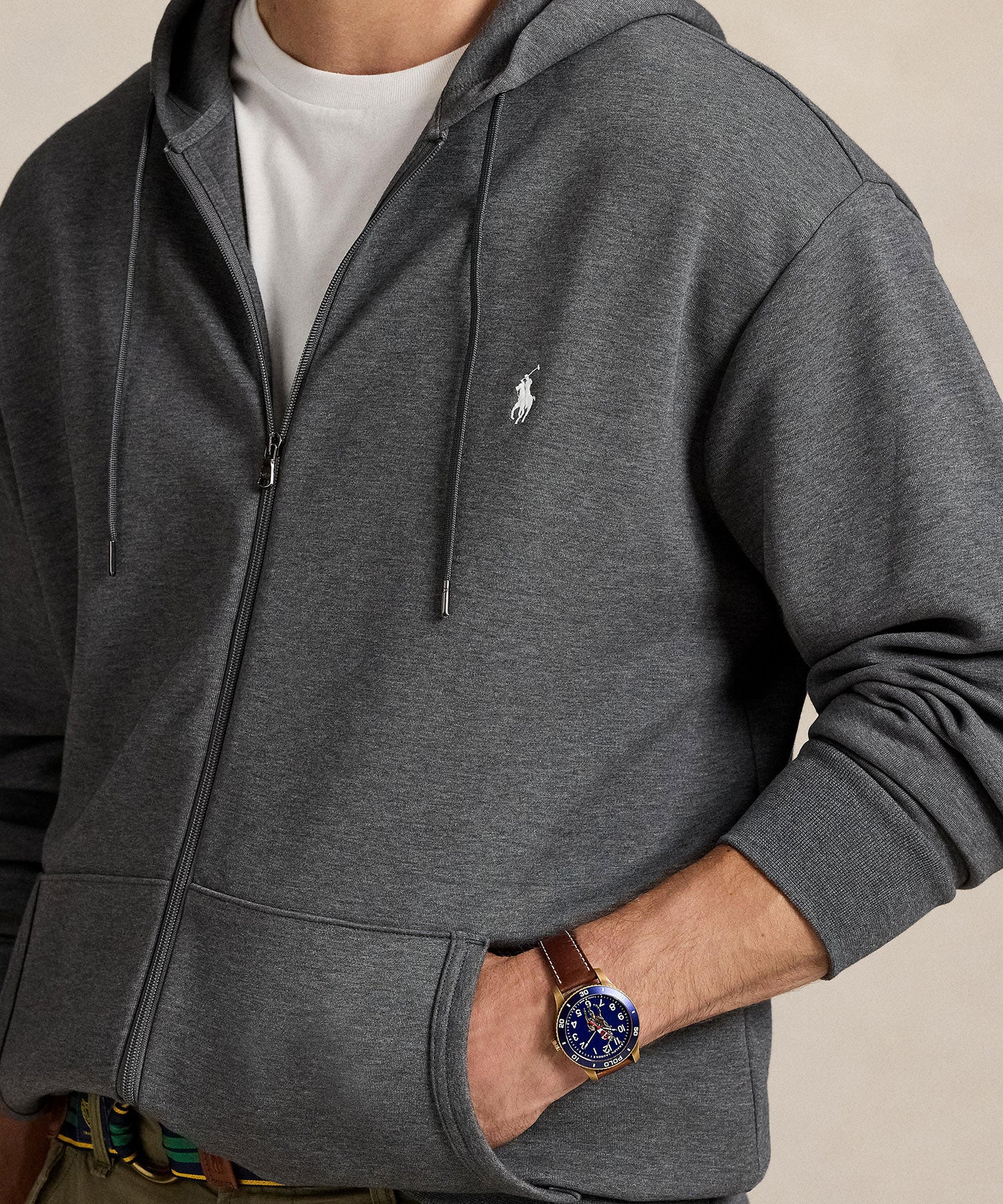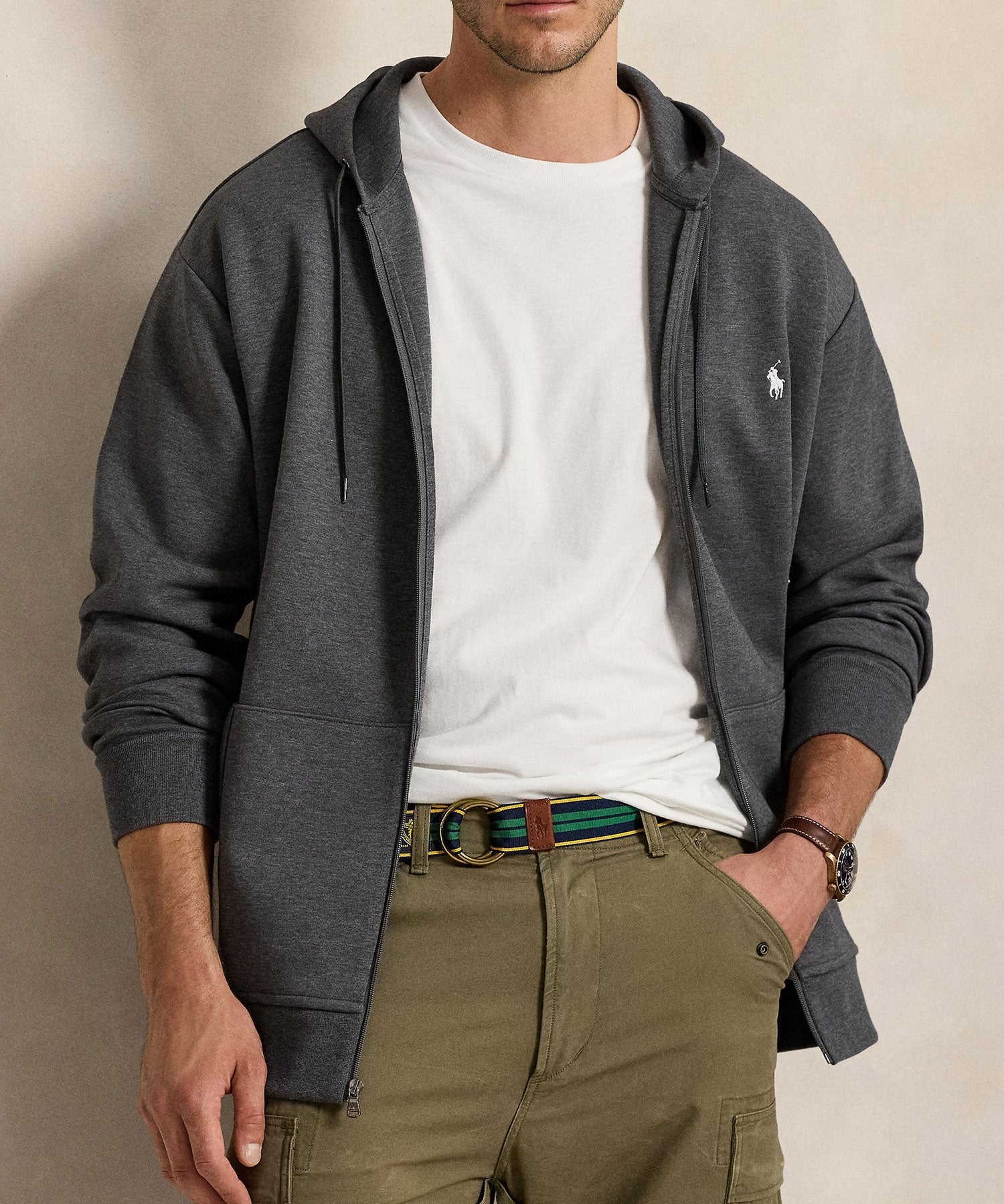 This one is made for the relaxed moments during your week. It's soft and comfortable and your companion for lounging around the house or running errands on a day away from the office. It's a natural layering piece thrown on top of a t-shirt or even a sport shirt when casual is the mood for the day. It has a ribbed knit bottom and cuffs that help to keep the look neat and the garment structured. A drawstring hood helps to keep you warm and dry should your weather fortunes turn. A split kangaroo pocket is a great place to rest your hands and a full zip from allow you to style it your way. It remains a classic in every season but especially for the fall and winter.