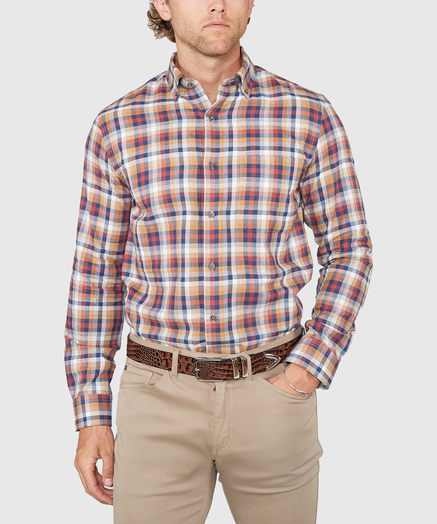 Sport shirts are a vital part of every man's fall wardrobe, especially since our favorite short-sleeve polos and t-shirts settle into a dresser drawer for the cooler season ahead. As a result, it's important to refresh the collection and look to shirts that are built with shorter days in mind. This big and tall patterned shirt features all cotton construction that wears superbly over time and offers up a versatile option that works well at home or in the office. It's also classically-styled and appointed with custom buttons . It also features easily complimented colors that help shine the spotlight on you and help anchor whatever you pair with it. A natural choice with denim, chinos or corduroy.