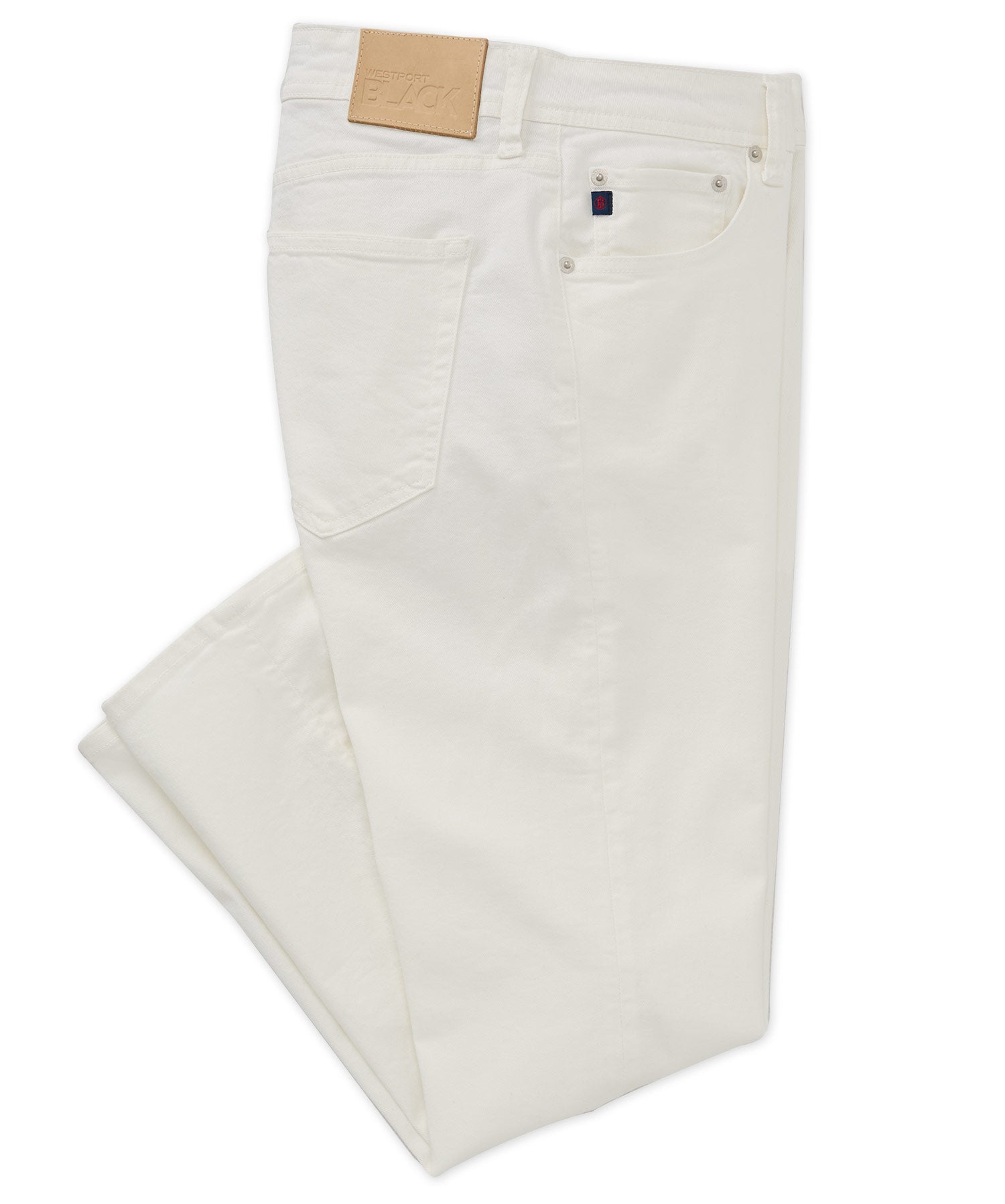 A reliable, jeans-inspired pair of pants is a must for any season. It's often times the first pair all of us go to for everyday wear. Since it's so essential it makes sense that it should also be as comfortable as possible. That's what you'll find in this five-pocket pant from Westport Black. It's made from a cotton-rich blend containing modern performance fabrics. As a result it conveys an element of stretch and makes for the best overall fit with added mobility. It also has soft hand feel and great shape retention. It hits all the style points of your favorite jeans with scoop front and rear patch pockets. A shank button and zipper fly opening finish the classic construction.