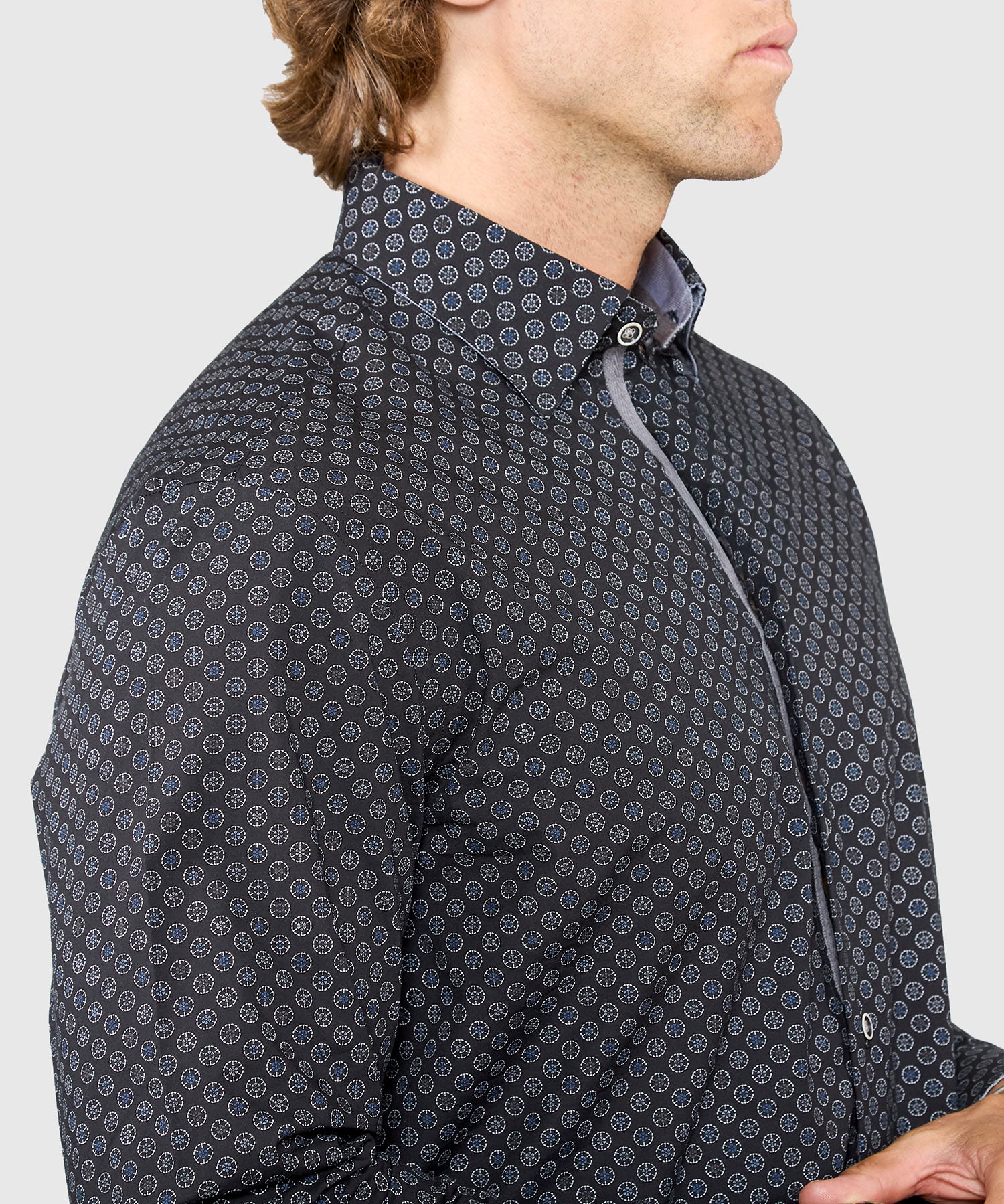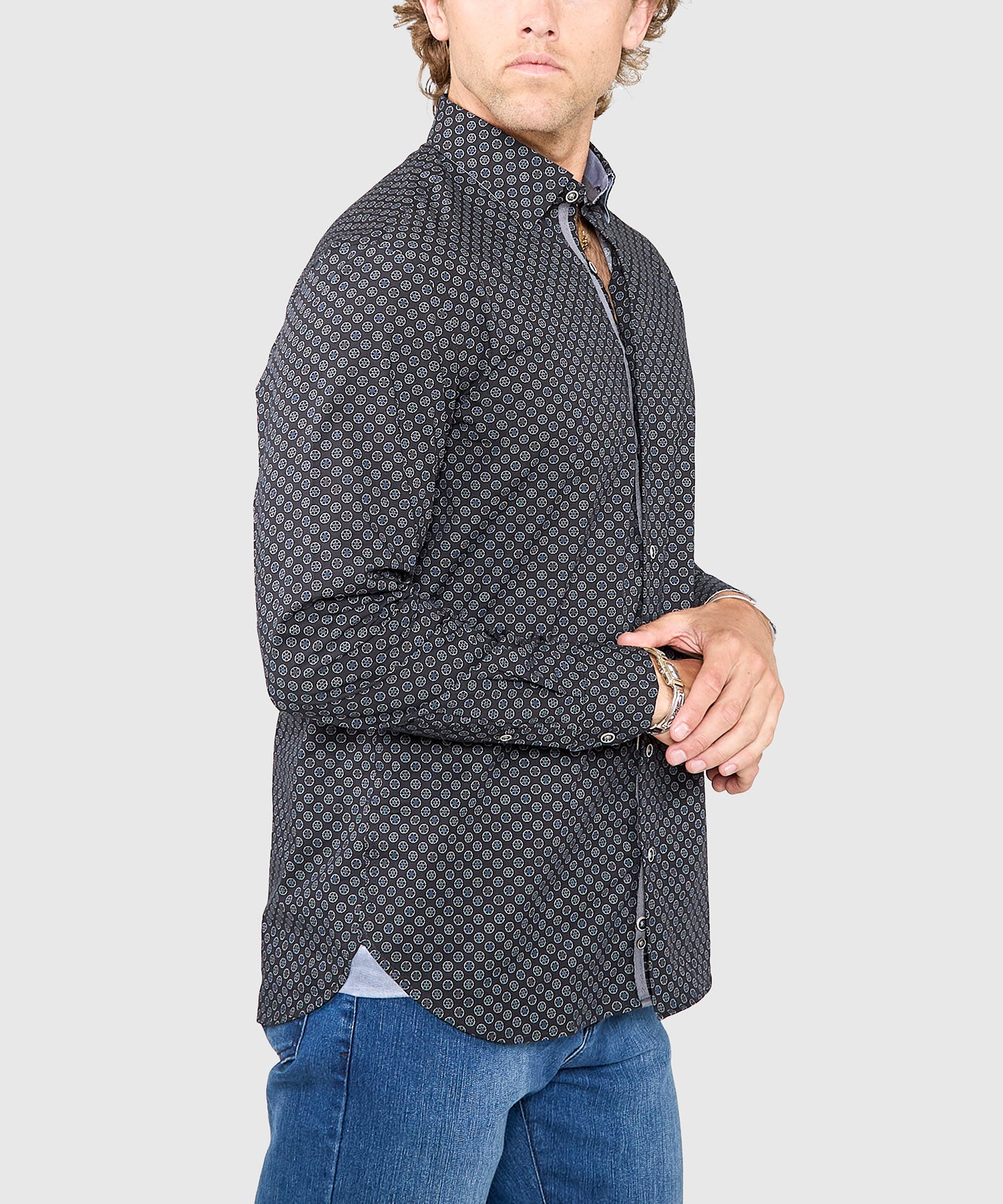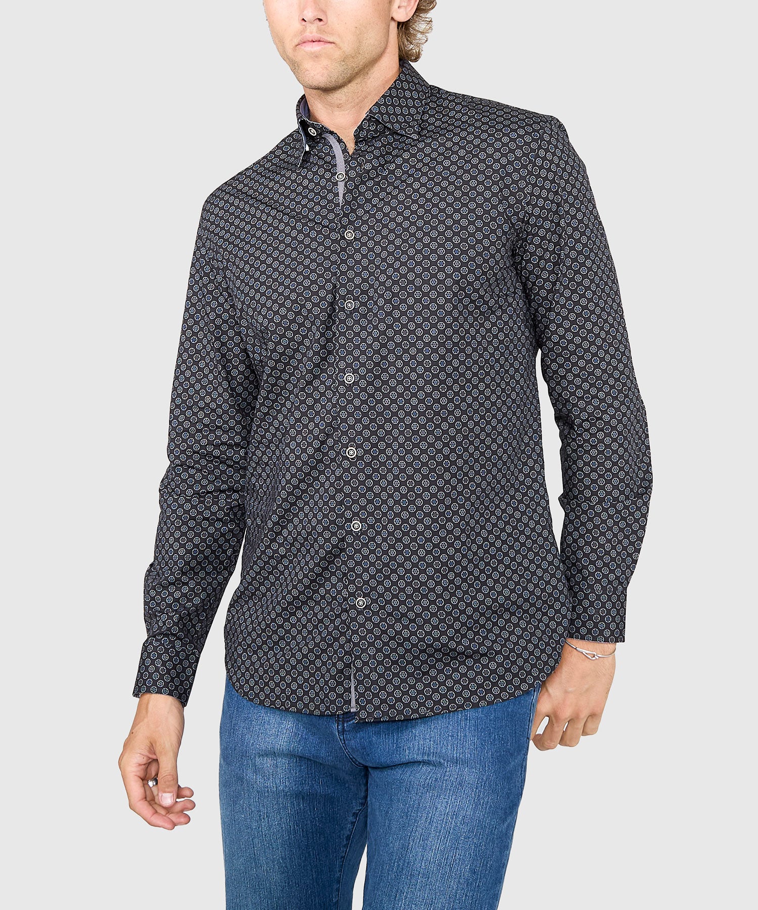 Westport Black Long Sleeve Hidden Button Down Collar Printed Sport Shirt