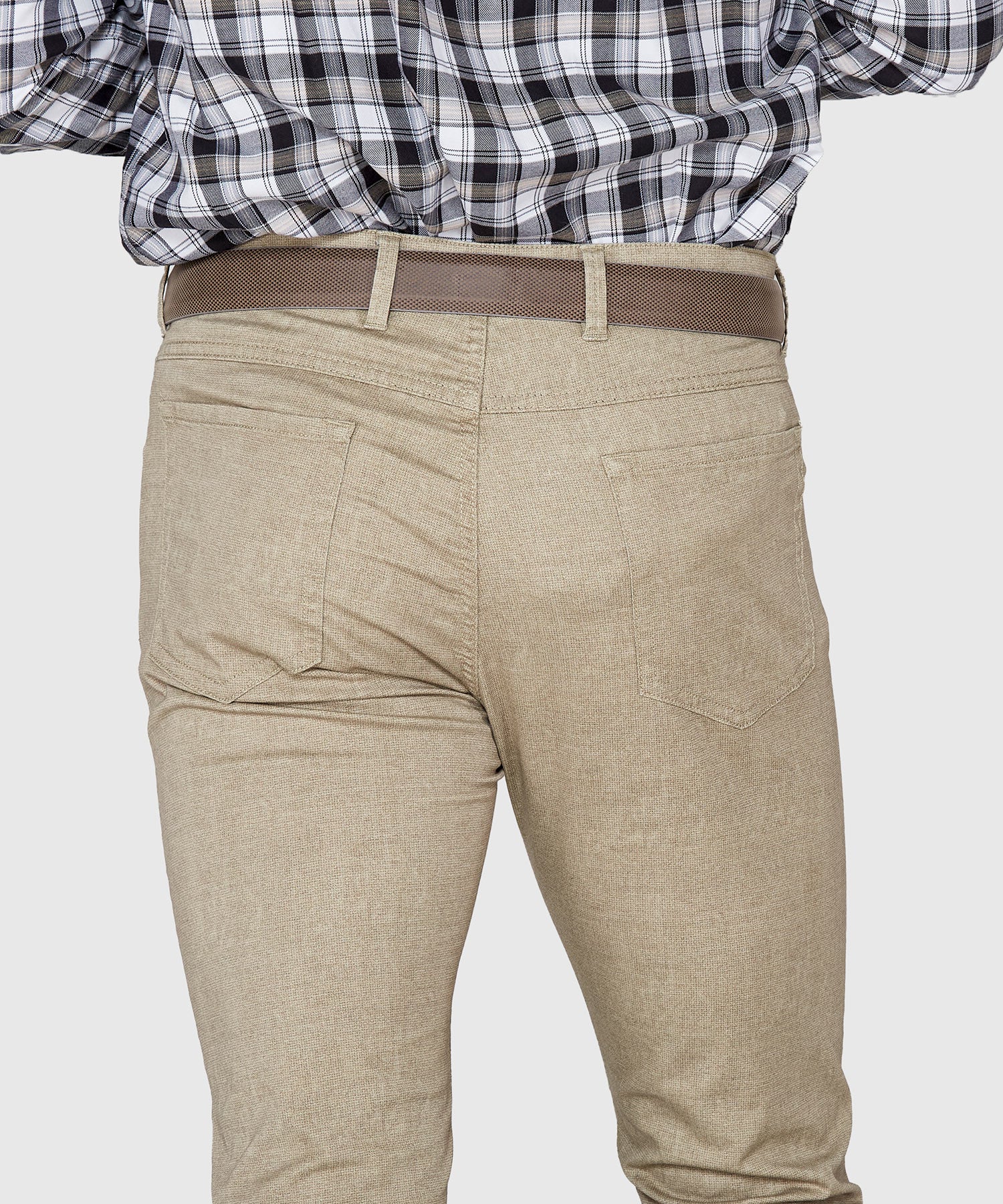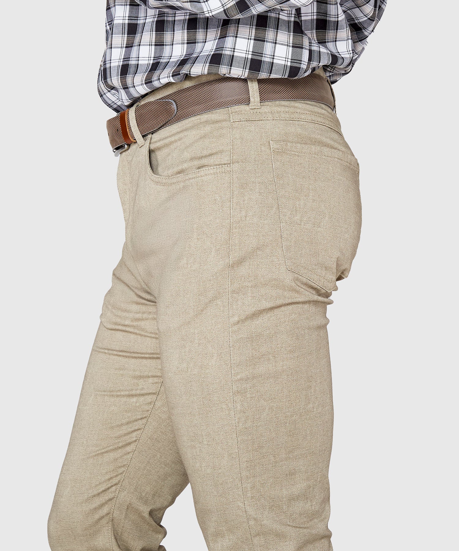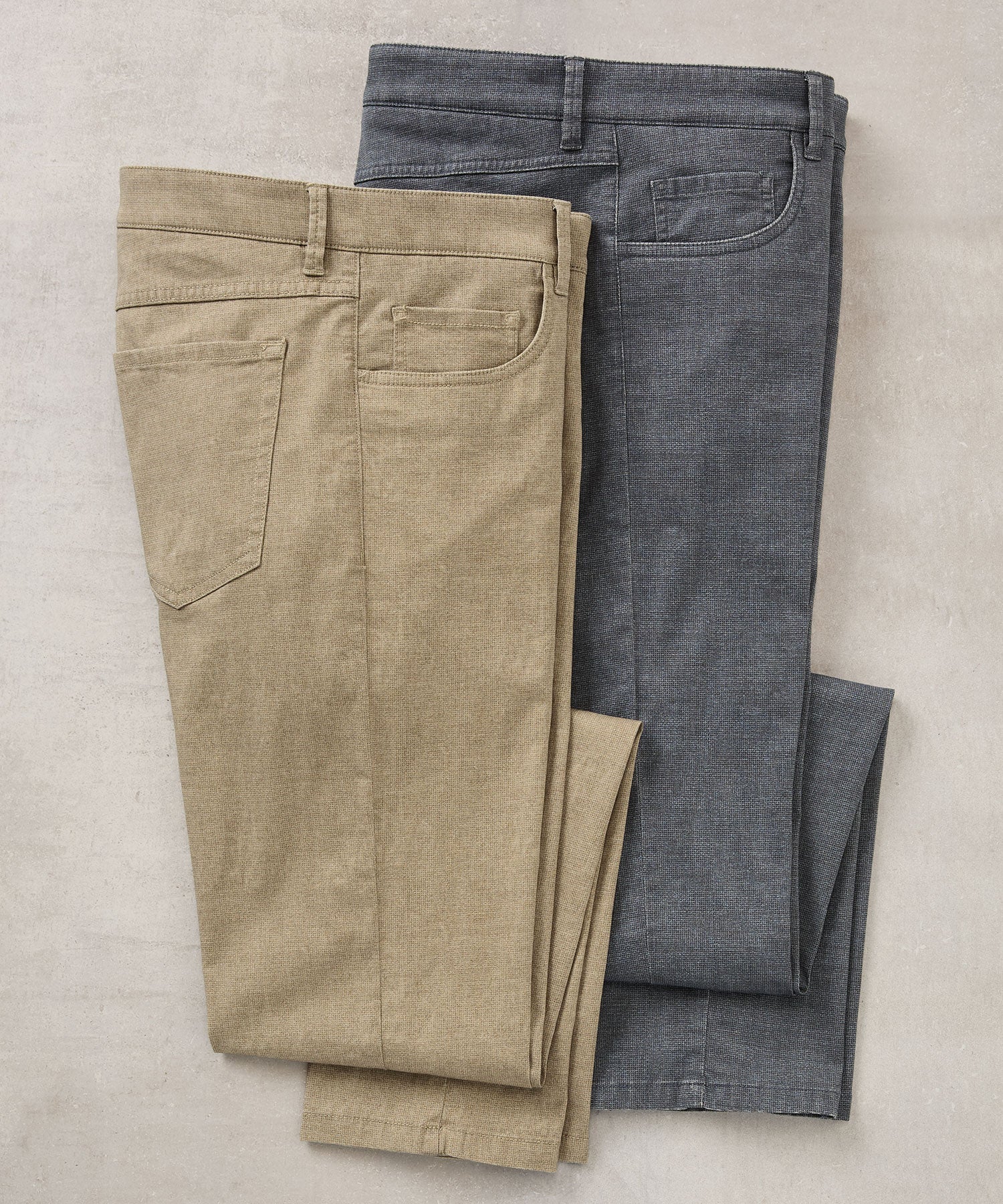 A reliable, jeans-inspired pair of pants is a must for any season. It's often times the first pair all of us go to for everyday wear. Since it's so essential it makes sense that it should also be as comfortable as possible. That's what you'll find in this five-pocket pant from Westport Black. It's made from a cotton-rich blend containing modern performance fabrics. As a result it conveys an element of stretch and makes for the best overall fit with added mobility. It also has soft hand feel.. It hits all the style points of your favorite jeans with scoop front and rear patch pockets. A shank button and zipper fly opening finish the classic construction. What's more is that is features a subtle "dog bone" pattern. It gives the pants a slightly textured look; making them just a cut above your average pair.