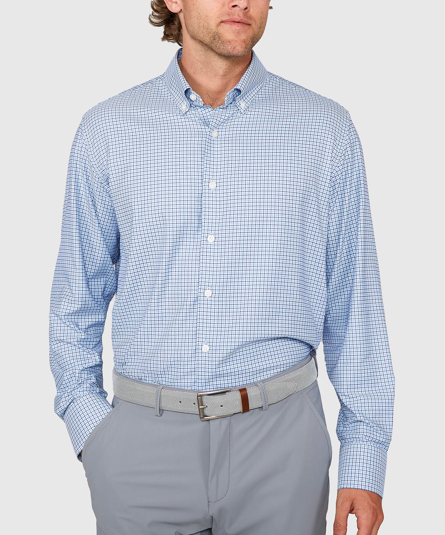 Performance fabrics bring a whole new dimension of comfort to just about any garment in which they're used. Chiefly they offer a greater degree of range of motion thanks to their stretch properties. They also help to keep you cool and dry. This big and tall sport shirt blends the best of these new fabrications with classic styling like this tattersall pattern.