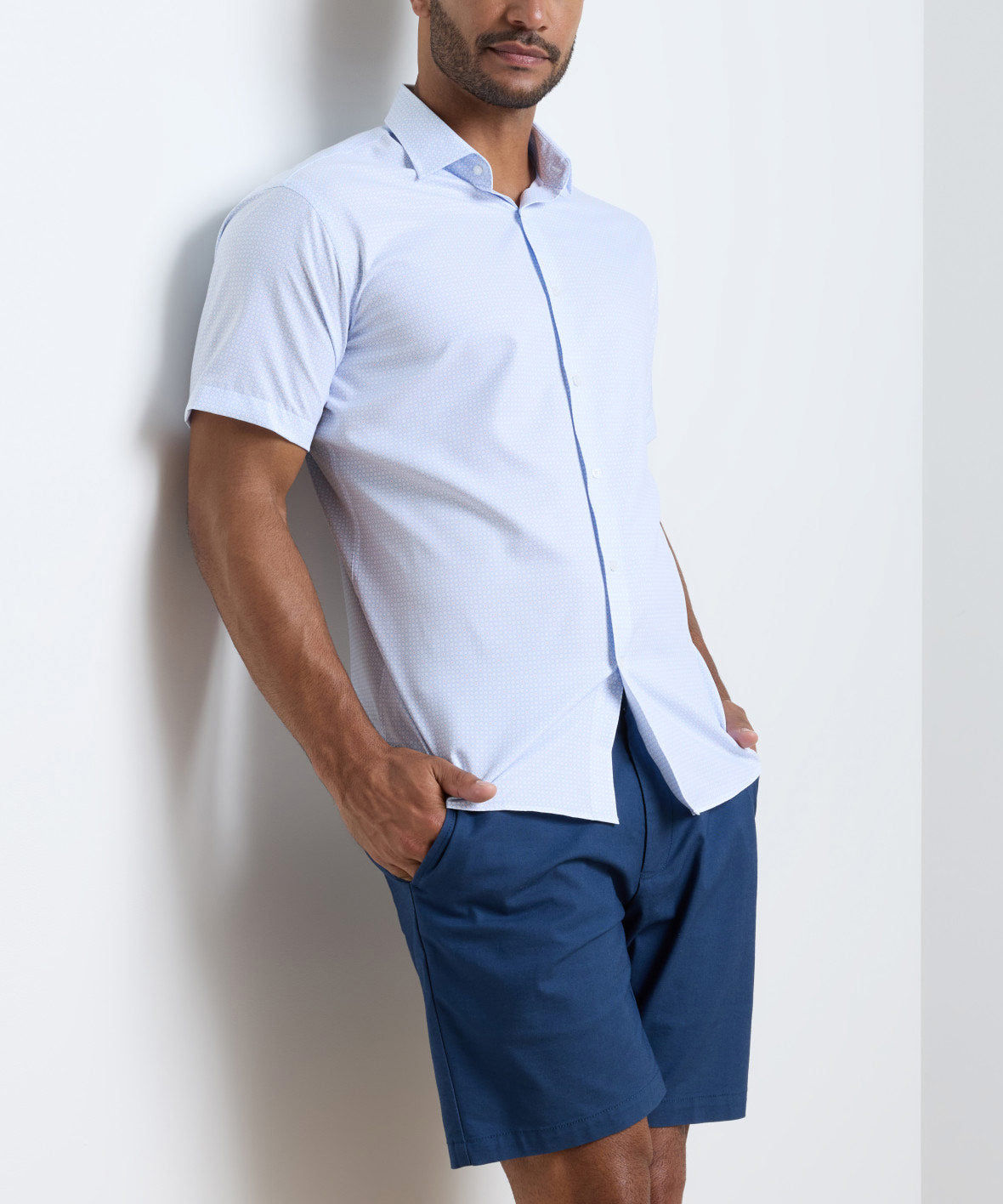 Performance-driven fabrics are steadily becoming part of all of our wardrobes. They offer so many benefits that it's hard not to be enamored of them. This big and tall sport shirt is no exception. It features the stretch and cooling properties for which these fabrics are renowned, while never sacrificing the stylistic spirit that makes it such a bold and versatile choice for most casual settings, including a day at the office. Details like a contemporary spread collar give a clean finish to the look, and a subtle print offers a refined elevation.