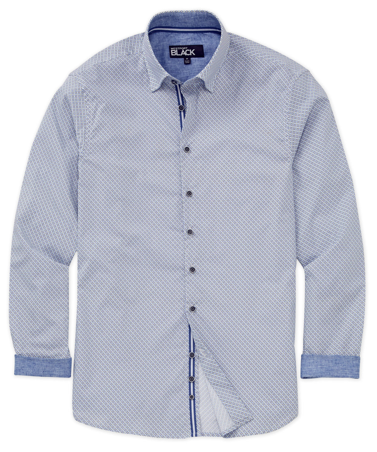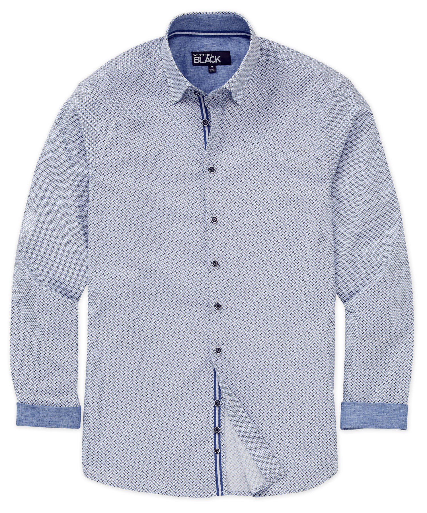 Make a stylish statement this spring with a printed sport shirt. It's a little break from the norm and a great way to stand out from the crowd. This one is sure to keep you comfortable in addition to looking your best. Premium cotton is paired with modern fibers to add a dimension of stretch-infused mobility. Custom contrast detailing at strategic points only serves to make this a sport shirt to take a second look at.