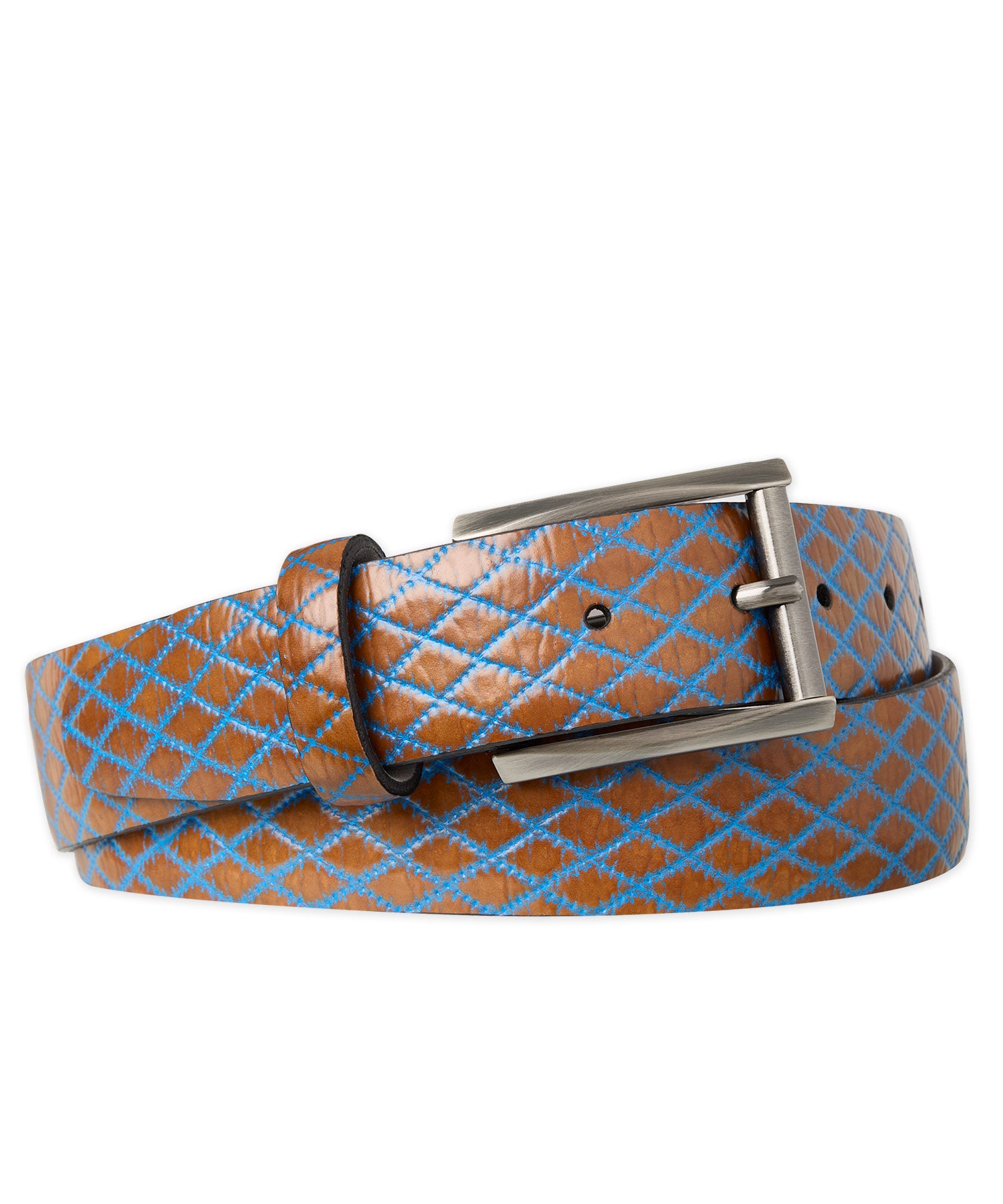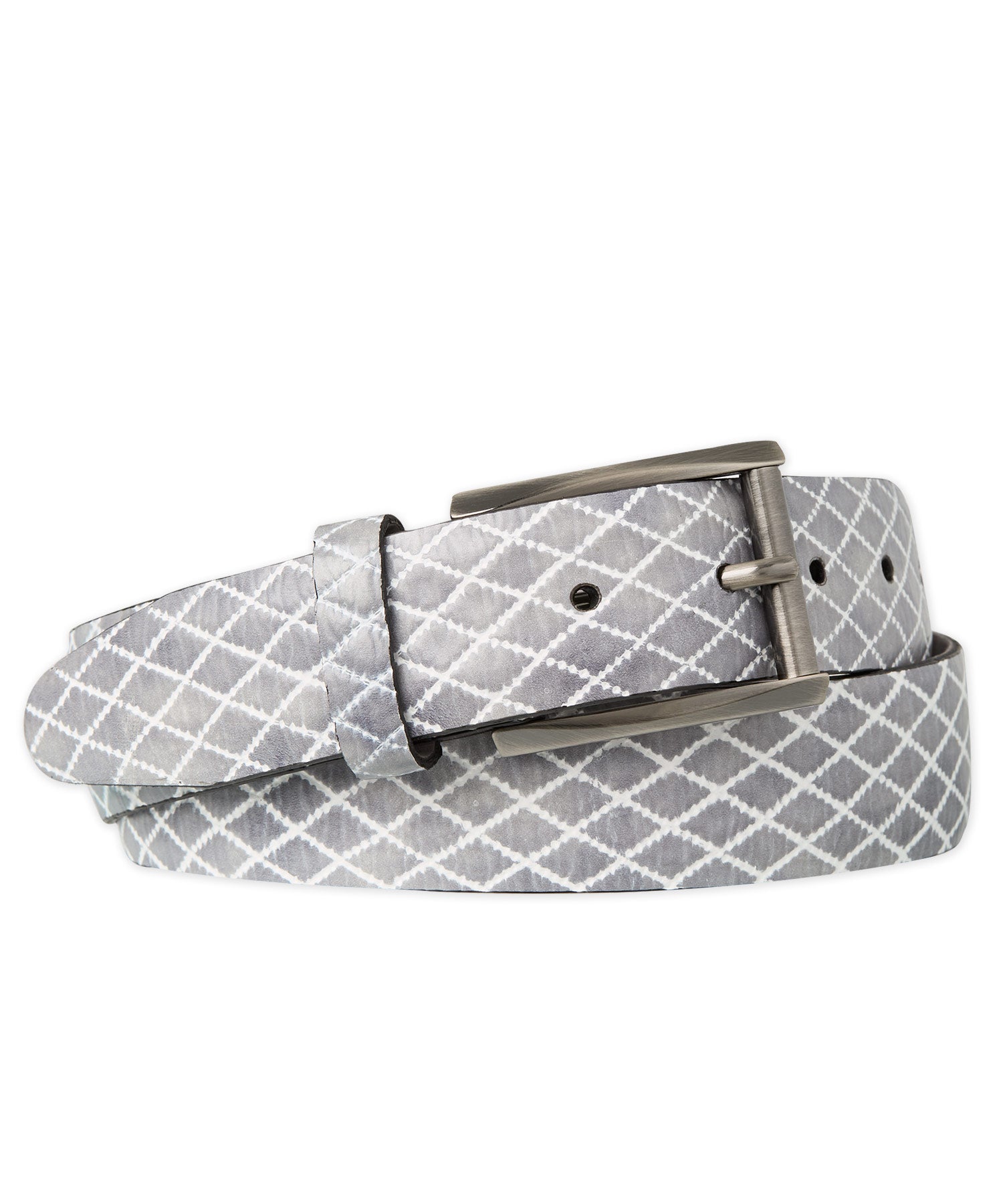 Made in the USA and crafted from fine Italian calfskin, this belt will add an elevated sense of detail to any look. It features a hand-painted diamond design, which offers visual depth. Its 35mm width is classic. Together with a signature nubuck lining and brushed gunmetal buckle, it's sure to become a favorite in the collection and one that can be employed for both dress and casual occasions equally.